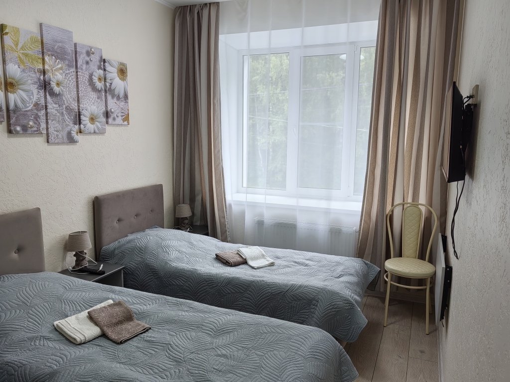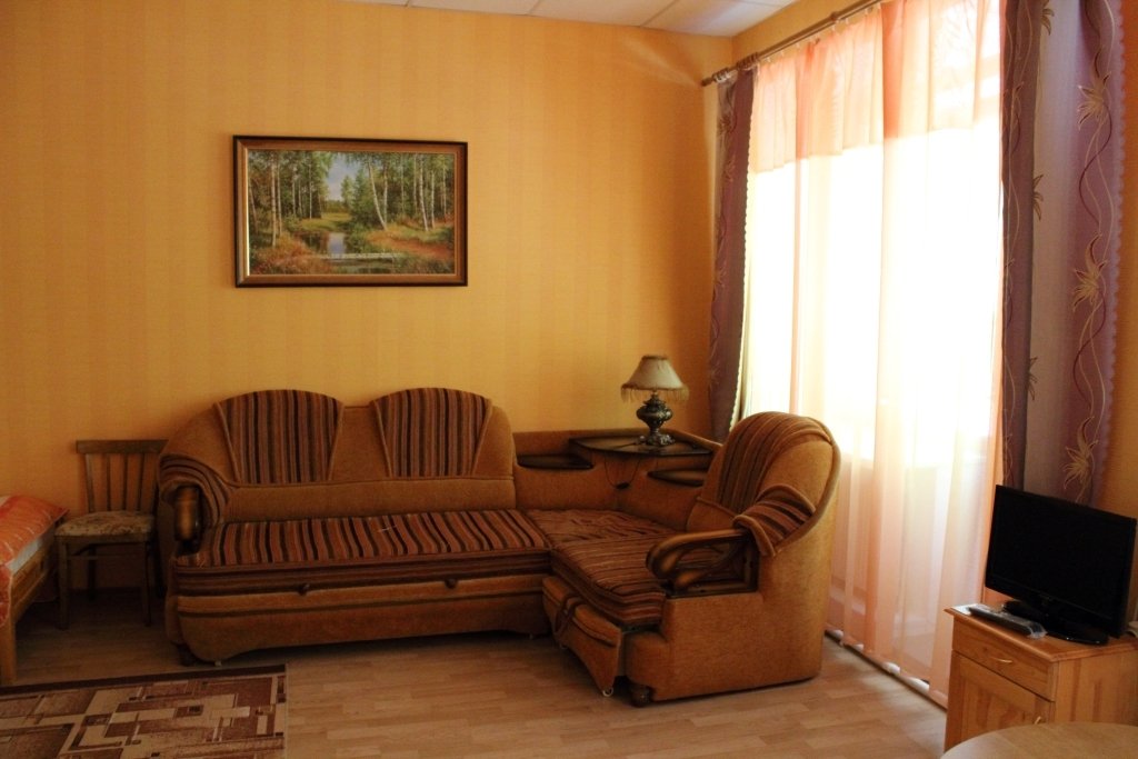июль 2020 г.Отзывчивый персонал, чисто и аккуратноГостиница находится на небольшой двуполостной дороге, до центра 15 - 20 минут ходьбы. Лучше брать номер с окнами в сторону Волги - будет тише. Находились с семьёй 5 человек в номере с 2 кроватями и с диваном трёхместный с улучшенной планировкой, но с окнами на улицу (но через улицу сосновый лес -запах прекрасный) за 3000/сутки. Разрешили надуть свой дорожный матрас. В номере есть чайник, телевизор, столик. На первом этаже уютная столовая на 1 семью (может быть занятой). К сожалению, большую территорию за гостиницей за 5 лет так и не привели в порядок.