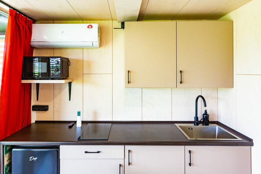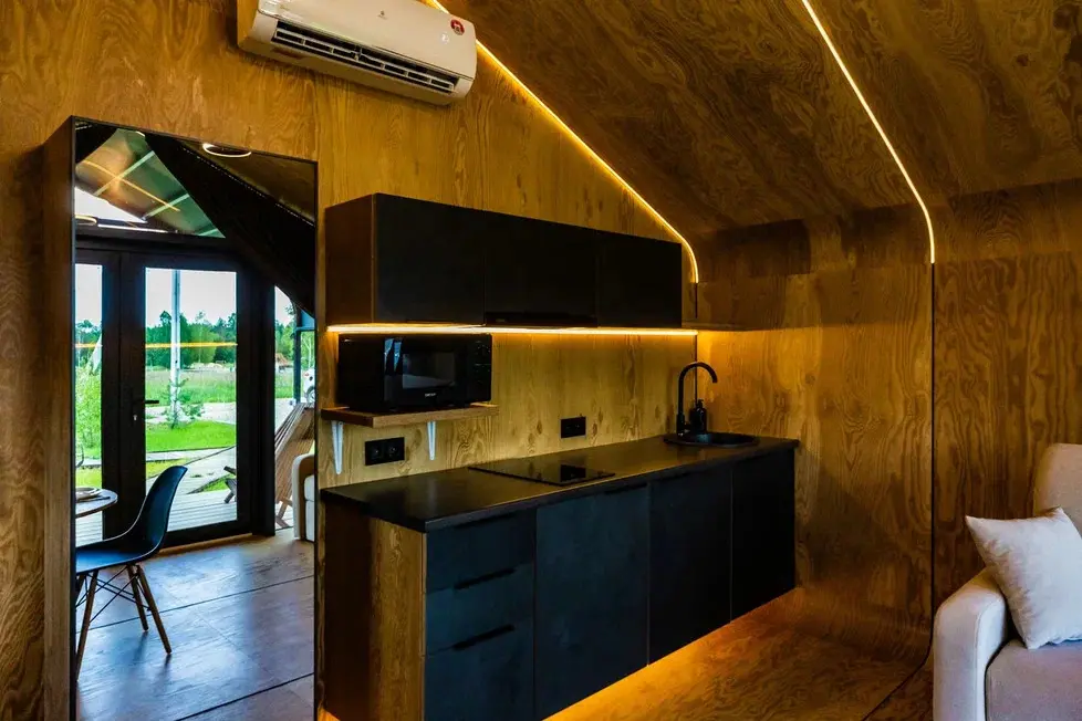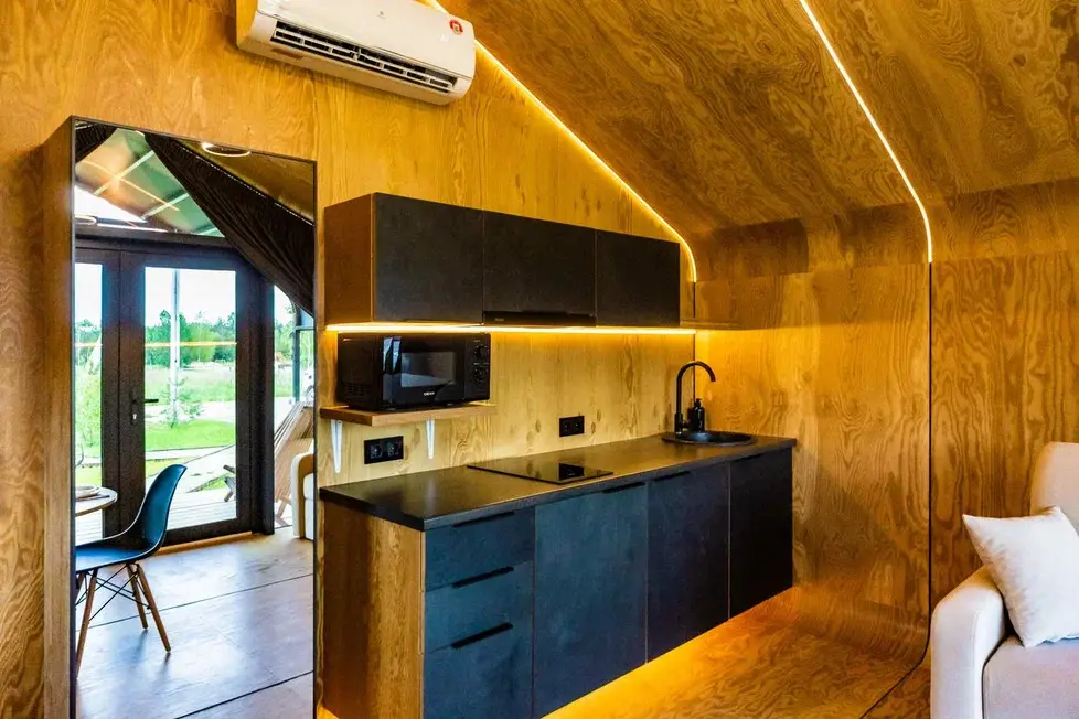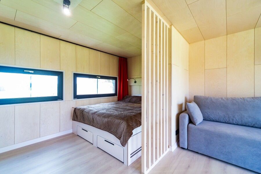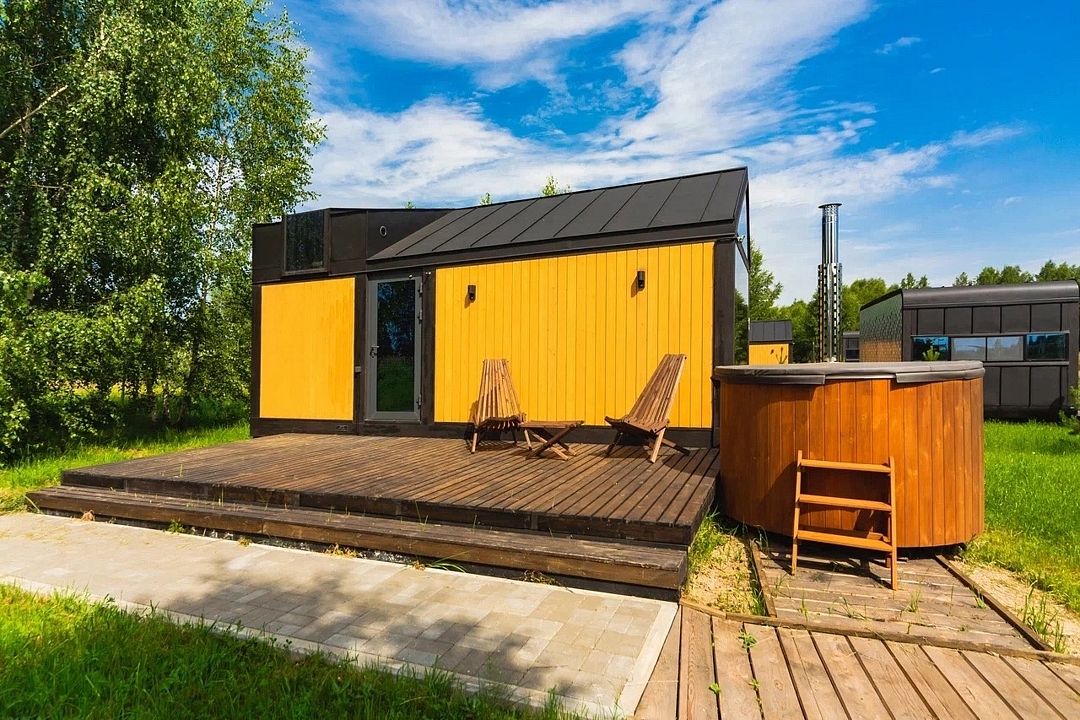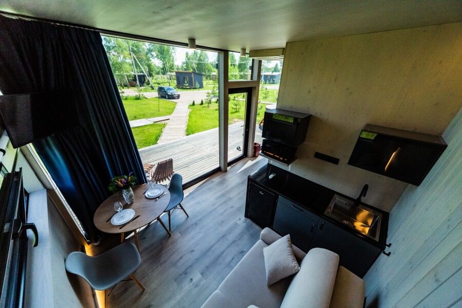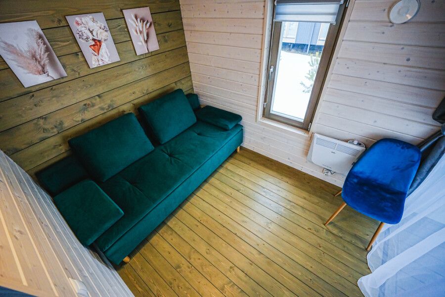 Уютный модульный дом площадью 29 м² — идеальное место для романтического уикенда, отдыха вдвоём или камерного выезда с друзьями. Основных спальных мест — 2, но с комфортом могут разместиться до 4 гостей.