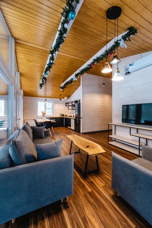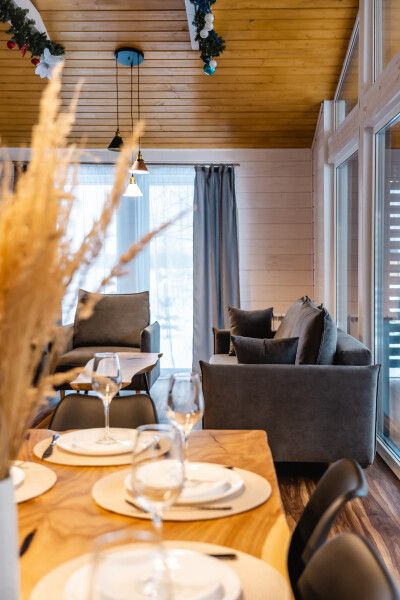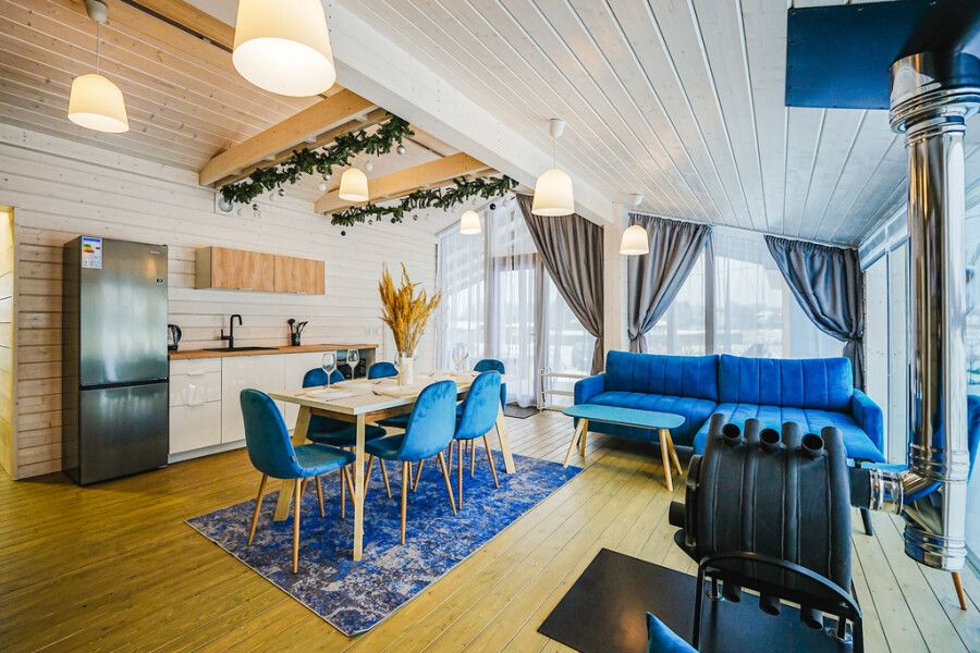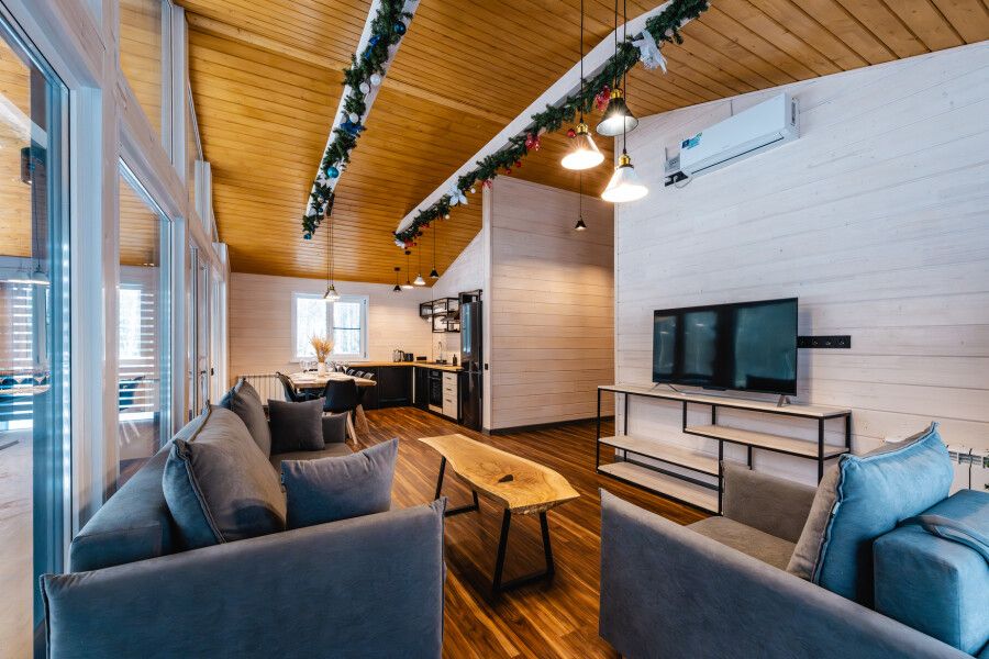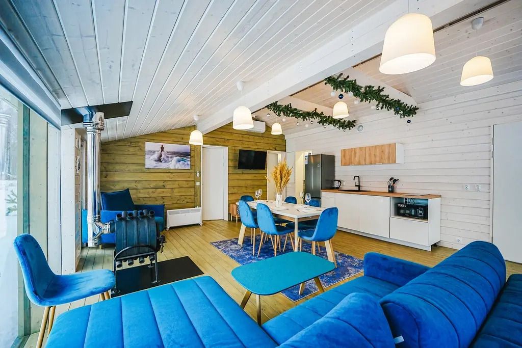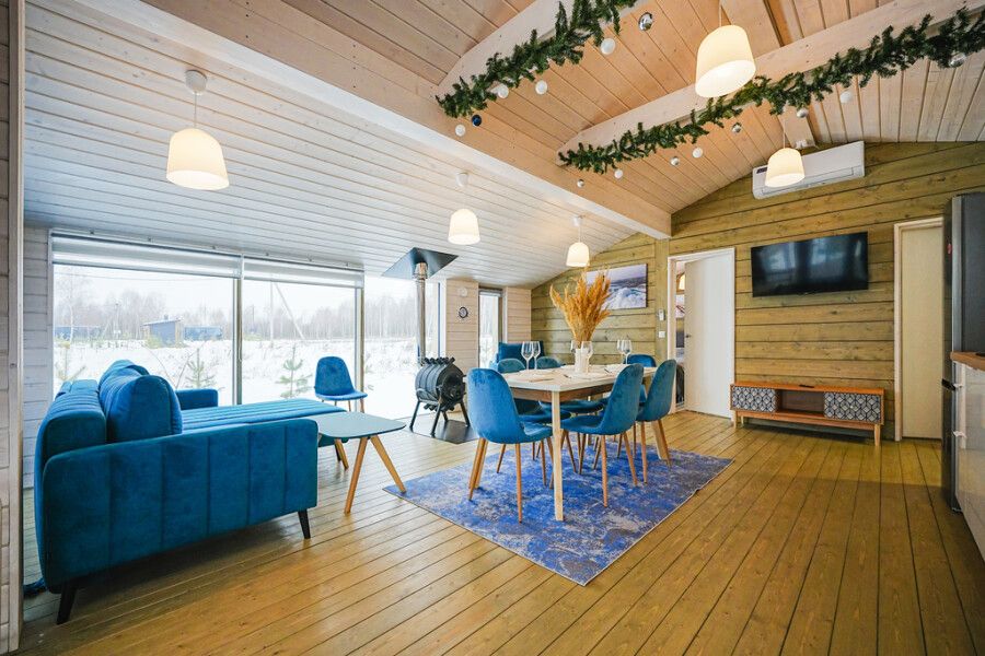Дом с дизайнерской отделкой площадью 100 м2 с 3 спальнями рассчитан на компанию до 8 человек.