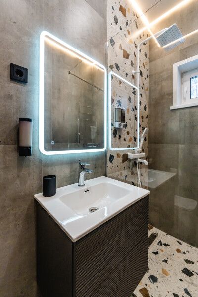 Принять водные процедуры можно в подогреваемой купели с подсветкой и гидромассажем (доп. плата)