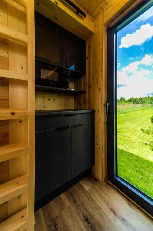 Уютный дом с панорамным остеклением во всю стену. Продуманная эргономичная планировка прекрасно подойдет для романтических пар и семей с маленьким ребенком. Внутреннее пространство разделено на спальню, гостиную и кухню. Внутреннее пространство разделено на спальню, гостиную и кухню.