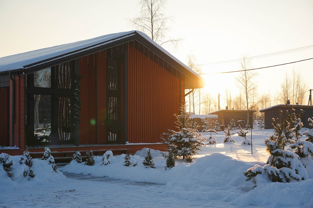 Возле каждого домика находится индивидуальная купель с мягкой подсветкой и гидромассажем, которая позволяет по-настоящему расслабиться и насладиться отдыхом под открытым небом. Для вашего удобства предоставляются халаты, банные полотенца и одноразовые тапочки, что делает процедуры ещё более комфортными.