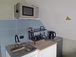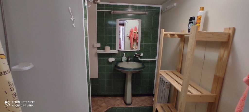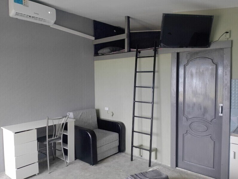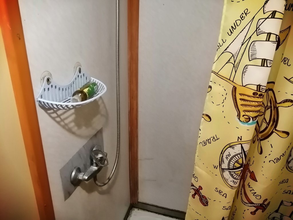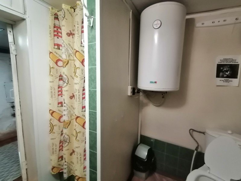В комнате раздельные душ и туалет, расположенные по-соседству через маленький коридорчик. Также есть печь СВЧ, холодильник, чайник, посуда, на окнах москитная сетка. Телевизор и wi-fi.
