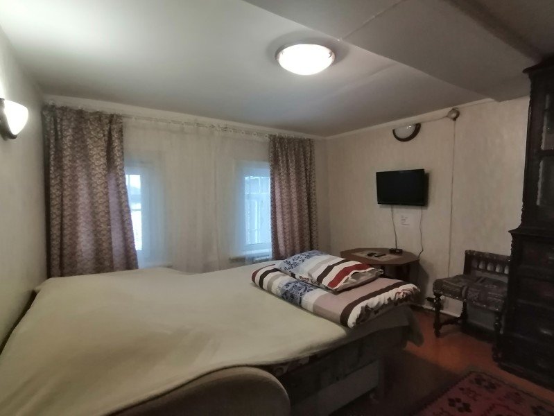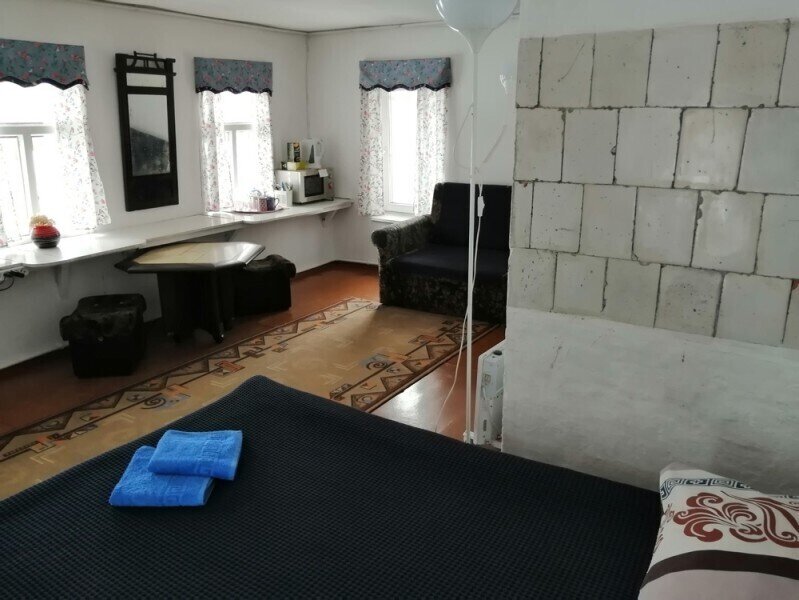 Это самая удобная комната в гостевом доме для двоих. Здесь есть двуспальная кровать, диван, кухня, душ и туалет.