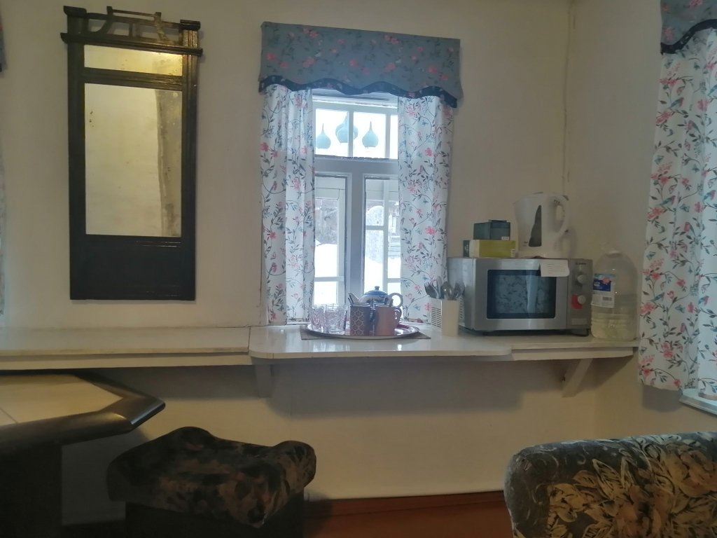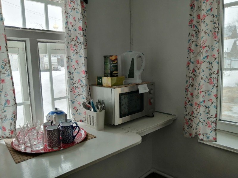 Комната отапливается водяным отоплением от газового котла, электрообогревателем и дровяной печью. На окнах москитные сетки. Есть холодильник, газовая плита, чайник, посуда. В комнате есть телевизор, wi-fi.