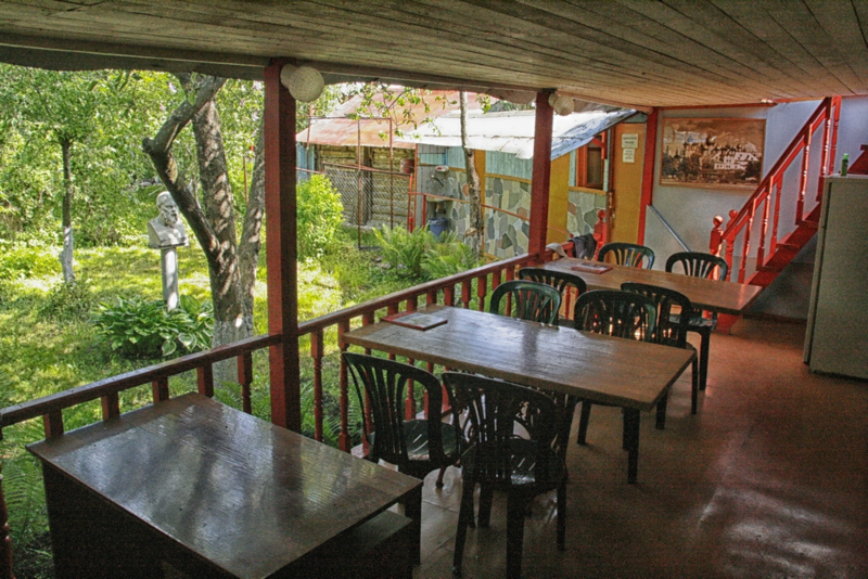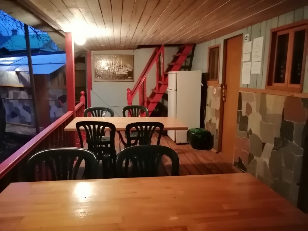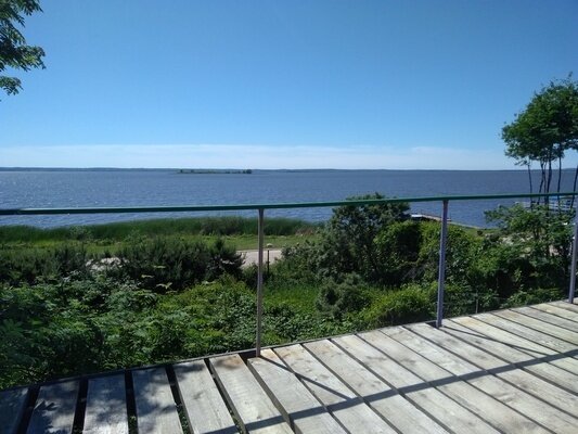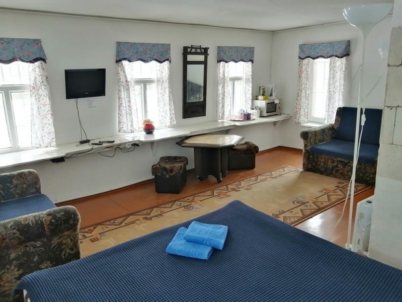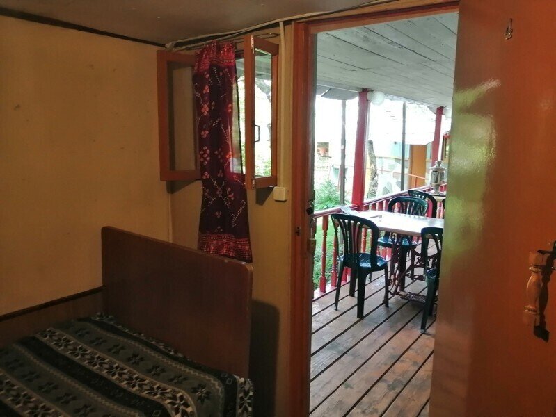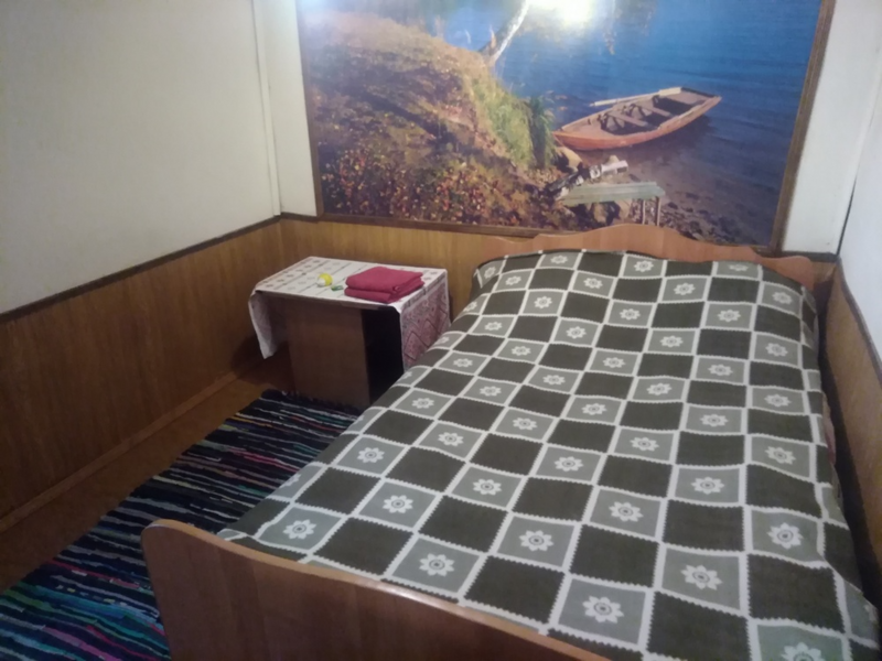 Летние номера представляют собой продолговатую террасу прилегающую к основному дому, в красивом яблоневом саду, душ (приличный) и 2 кабинки туалета, а также кухня - на всех. А вот столик - по каждому на номер. В нашем номере было 2 кровати, кондей, тумбочка, пара вафельных полотенец, зеркало, вешалки, фумигатор, розетки. На теплую летнюю ночь этого было достаточно. Номер чистый, аккуратный, хоть и простенький. В очередь в душ стоять не пришлось. Но это была среда, кажется, не выходной. Есть выход на террасу на крыше, с нее открывается вид на озеро. Порадовала хозяйка, открытая, добродушная и общительная. Есть WiFi, но мы не пользовались. Минус - тонкие стенки и высокая слышимость. Но за 1000 рублей с двоих мы знали чего ожидать.