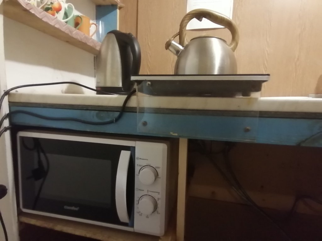 После выходных дней часть гостей уехала и Михаил - хозяин, художник - любезно предоставил мне более комфортный номер. В номере уже был свой душ и туалет, холодильник, телевизор и обогреватель, а так же чайник и микроволновка и опять же набор посуды. Хороший Вай-фай