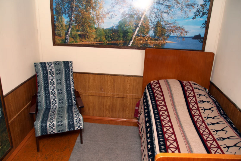 Летняя одноместная комната с общим душем, кухней и туалетами.