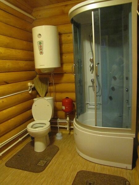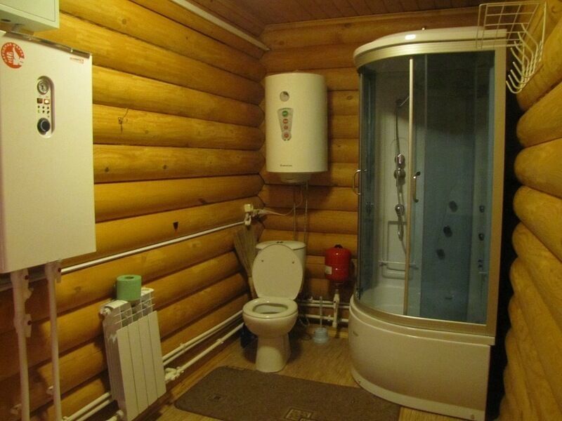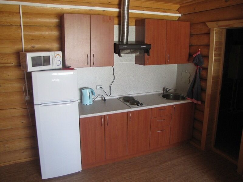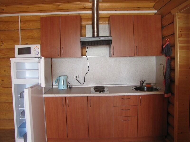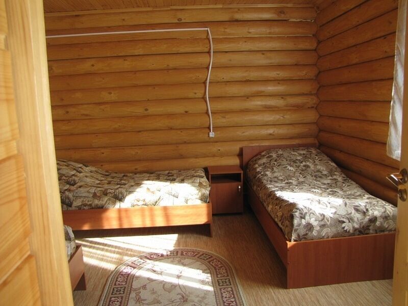 В доме 4 двухкомнатных номера. Номер представляет из себя каминный зал со встроенной кухней и полным комплектом кухонных принадлежностей (холодильник, СВЧ-печь, электропечь, горячая и холодная вода круглосуточно), стол на 6 человек, раскладывающийся диван в гостиной, телевизор, ДВД, аудиомагнитофон, шахматы, шашки, нарды, домино, карты. Отдельно спальня на три кровати с постельным бельем + раскладушки. Отдельно санузел - туалет, душевая кабина, сушка, раковина. Постоянно горячая - холодная вода, в зимний период постоянное отопление.