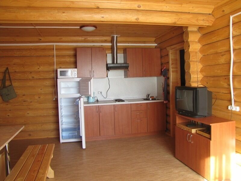 На территории построены комфортабельные деревянные дома, в которых могут разместиться до шести человек. Для удобства отдыхающих возле каждого дома располагается мангал, беседка и коптильня для рыбы.