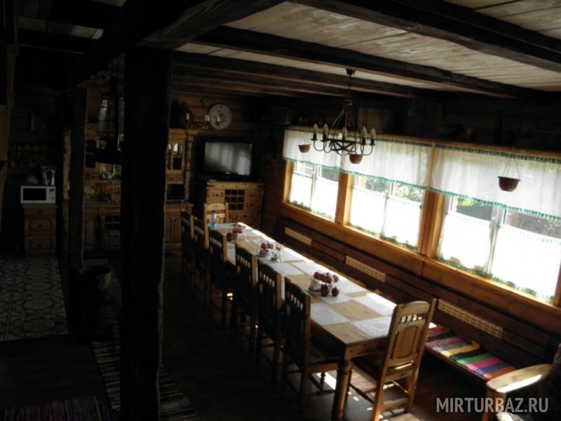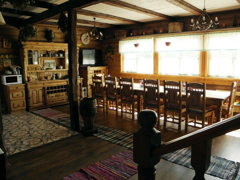 Гостиный зал на 14 человек. ТВ, спутник, караоке, DVD, кухня (варочная панель, холодильник, СВЧ, посудомойка), есть все необходимое для приготовления обеда, пикника, два туалета, душевая кабина, каждое утро - завтрак: блины или оладья с чаем - на ваш выбор.