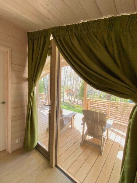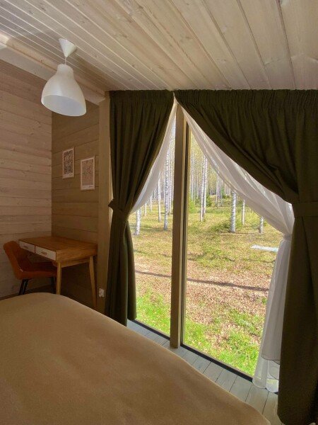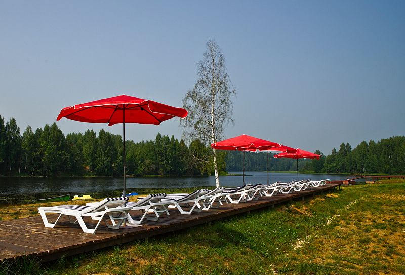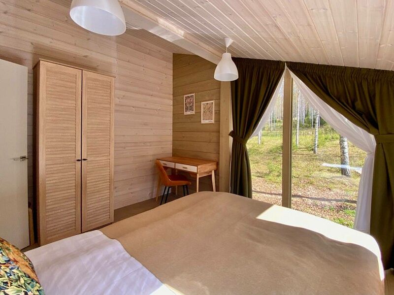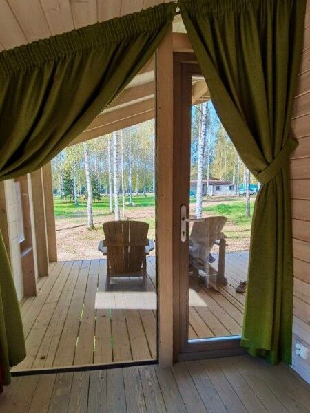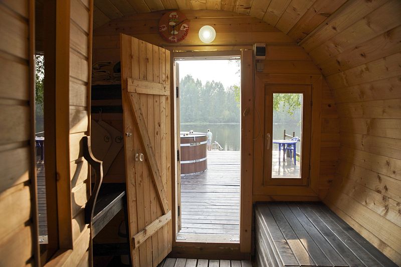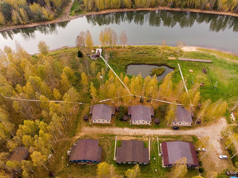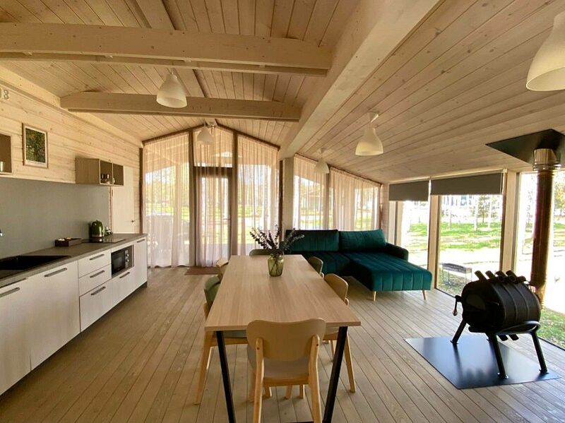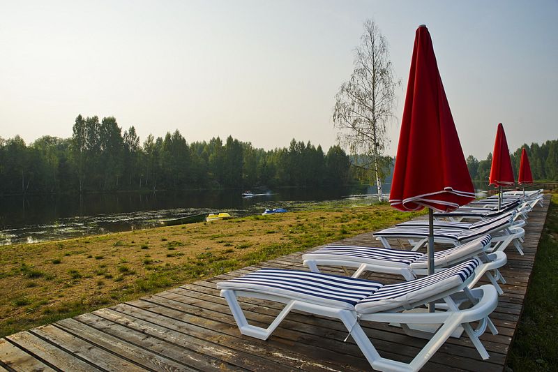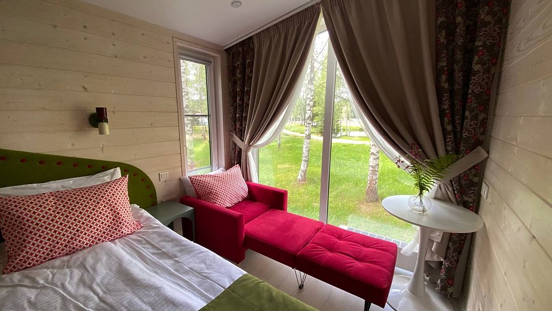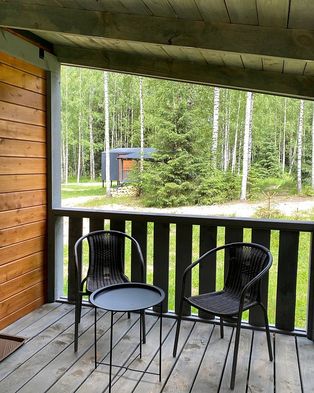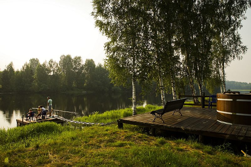 Каждый номер имеет отдельный вход и собственную террасу, а также панорамное окно с видом на реку или пруд.