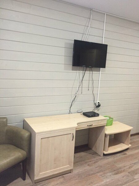 В номере есть все необходимое: шкаф для одежды, кресло, тумбочки, светильники над кроватью, кровати с ортопедическими матрасами, телевизор, чайник с набором посуды (для чаепития), холодильник, санузел с душевой кабиной и феном, прихожая.