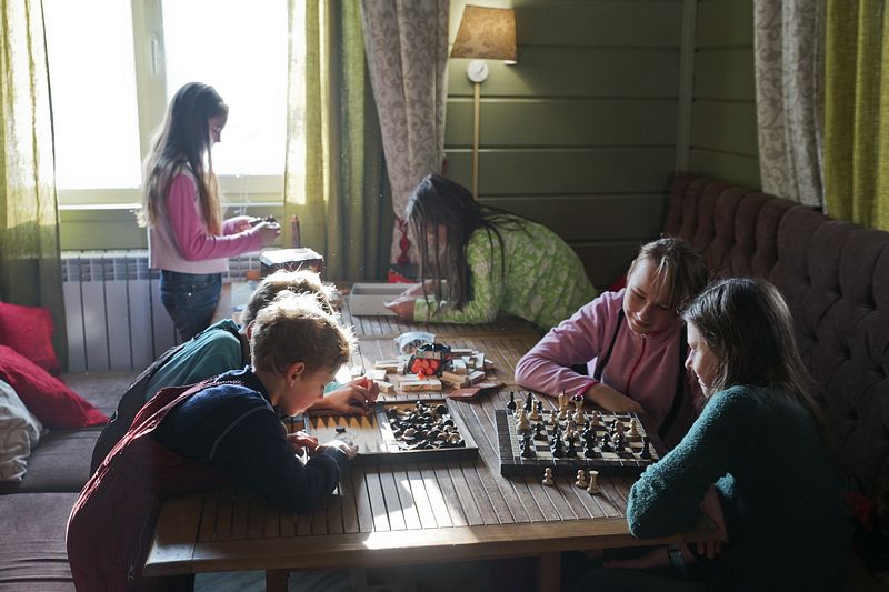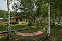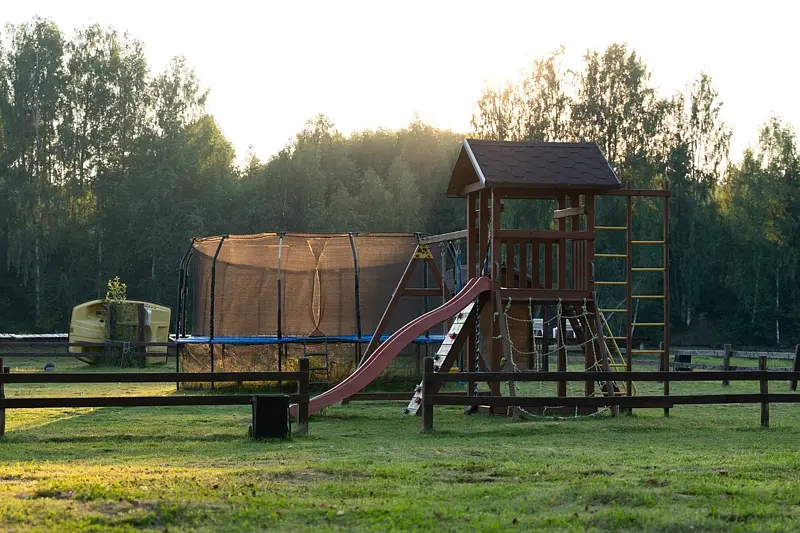 Для детей также предусмотрен ряд развлечений, среди которых детская площадка, батут, настольные игры и посещение агро-зоопарка.