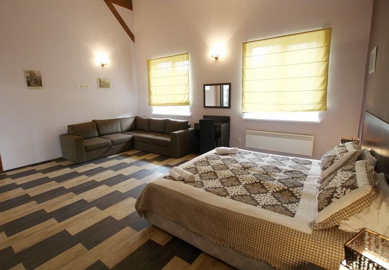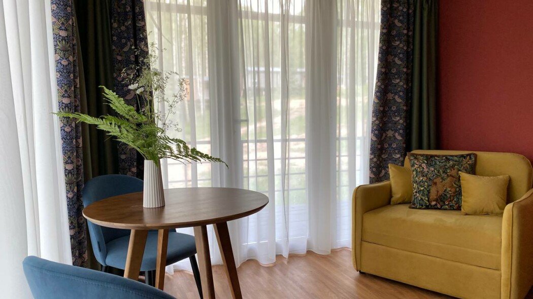 Двухкомнатный номер: спальня с двумя односпальными или одной двуспальной кроватью и гостиная с диваном — рассчитан для гостей, предпочитающих комфорт.