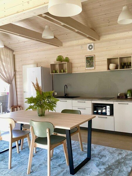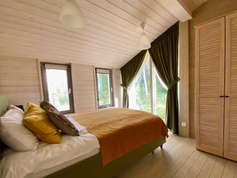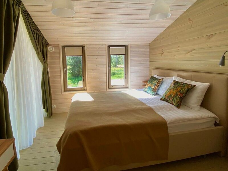 Комфортабельный трехкомнатный коттедж с двумя спальнями отлично подойдет для семьи или большой компании. В нем может разместиться до 6 человек.
