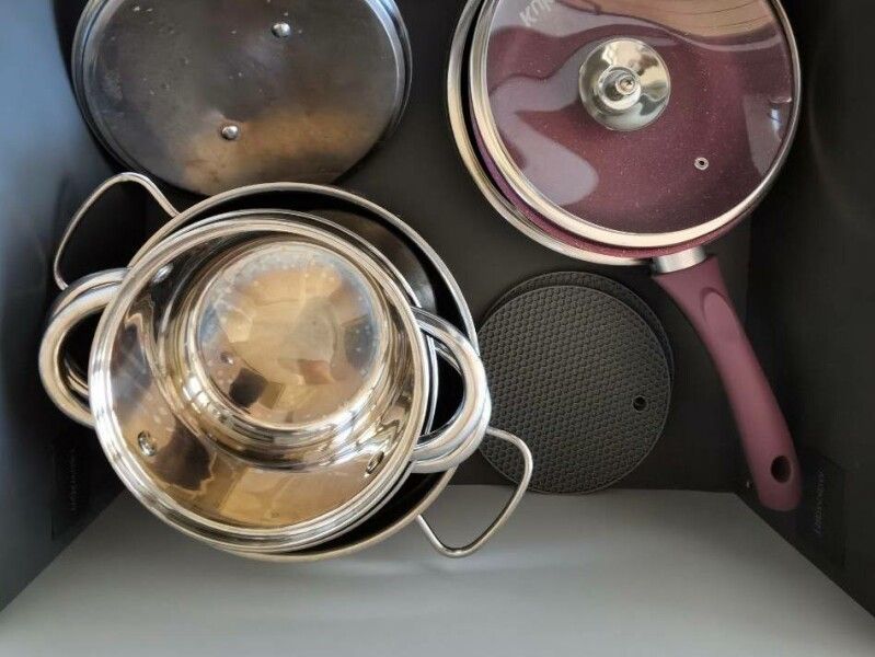 В спальне: двуспальная кровать 160х200 с ортопедическими матрасами, прикроватные тумбочки, места для вещей (шкаф или комод).