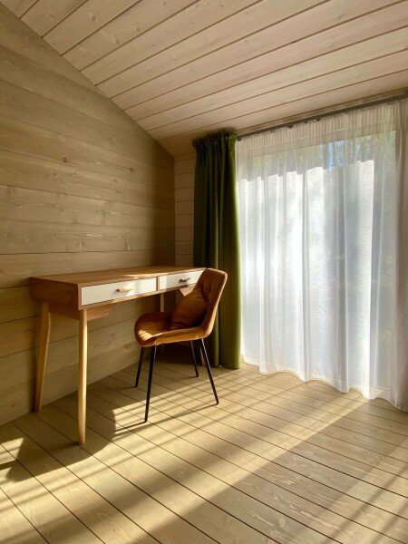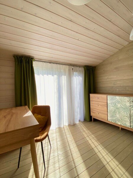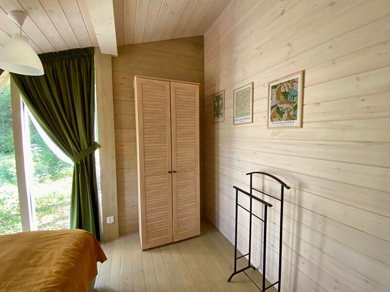 В коттедже отделка выполнена из экологичного натурального дерева.