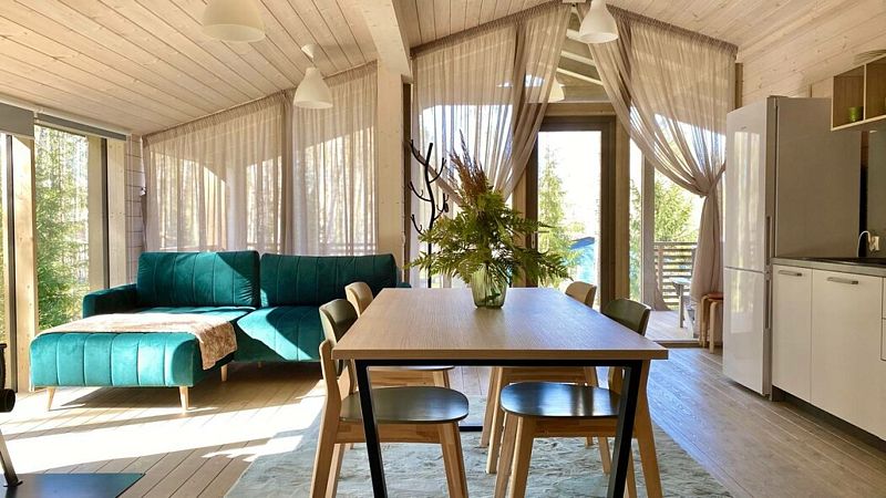 Для проживания уютные коттеджи в стиле шале, которые идеально подходят как для коротких выходных, так и для длительного пребывания.