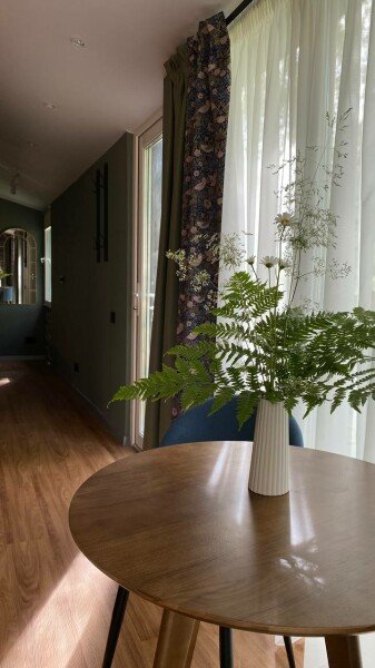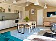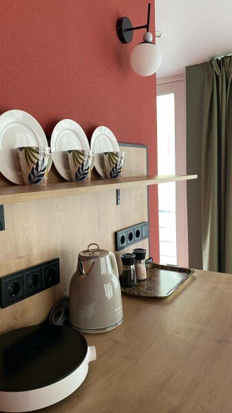 Современный дизайн в натуральных тонах подарит ощущение спокойствия и гармонии. Студии имеют просторные террасы и отдельный вход, внутреннее пространство разделено на две зоны: для сна и гостинную.