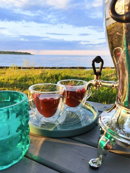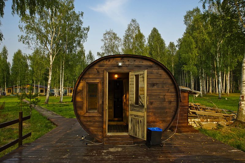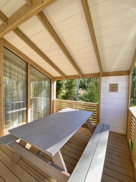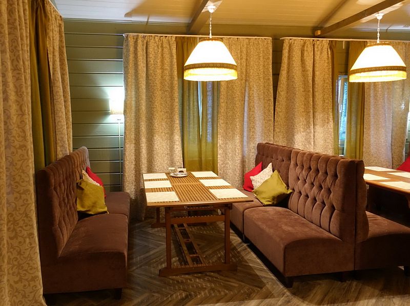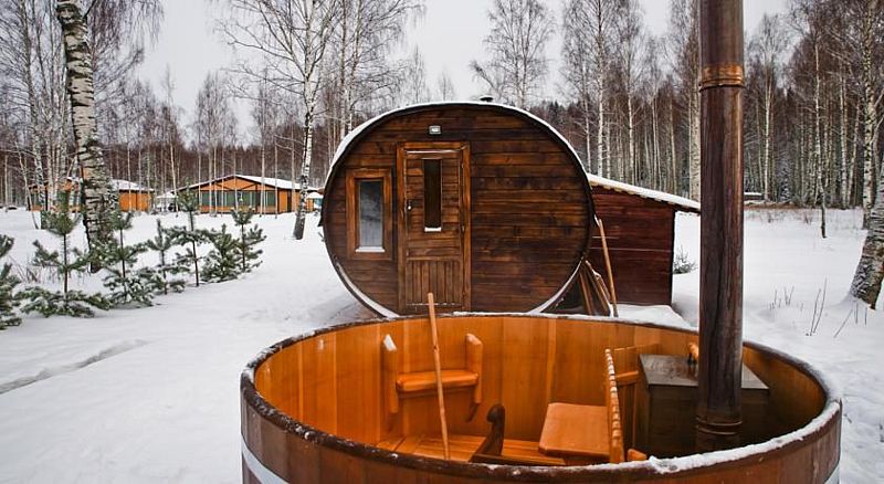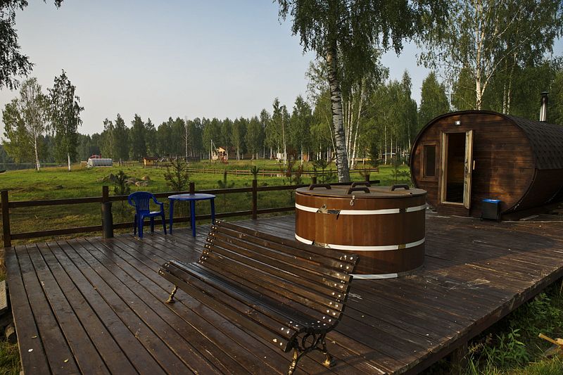 Особенно приятно, что у каждого коттеджа есть отдельная застекленная веранда со столом и лавками, а также беседка на открытом воздухе, снабженная мангалом и принадлежности для барбекю.