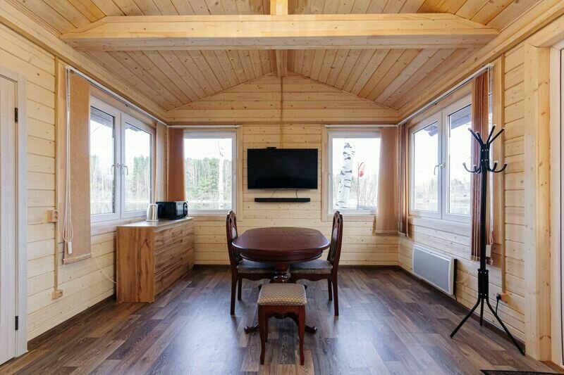 Из окон открывается прекрасный вид на реку Чеснава. Гостиная – место, где можно провести время большой компанией. На кухне можно разогреть в микроволновке припасённую еду, вскипятить чай и собрать за столом компанию. Рядом с домом– мангальная зона (аренда уже включена в стоимость проживания).
