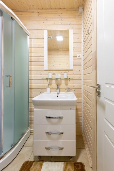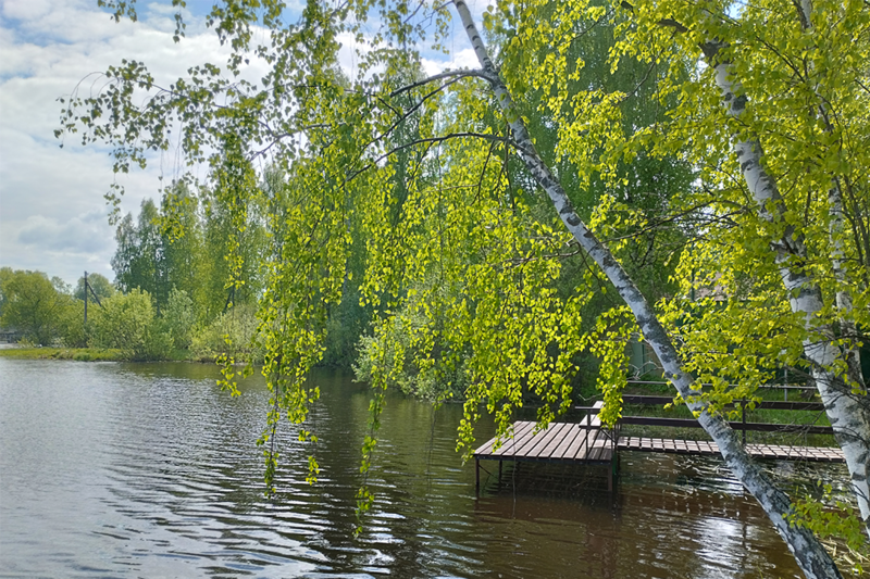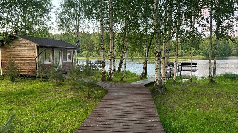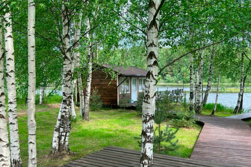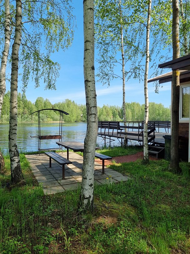 Уютные коттеджи, расположенные в живописном месте Рыбинского водохранилища, в окружении сосен и берез. В домике: