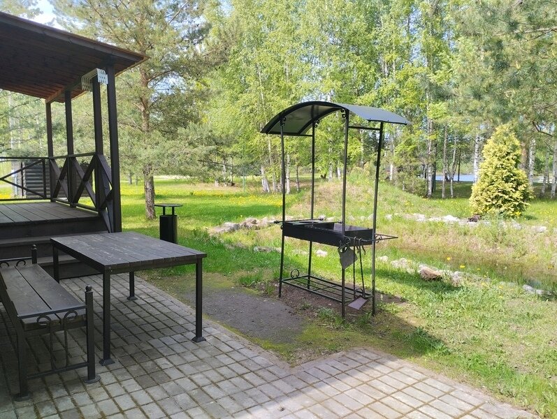 Проживая в коттеджах у гостей есть возможность готовить еду самостоятельно (кухня в коттеджаж оборудована всем необходимым для приготовления еды), а для проживающих гостей в гостиничных номерах предоставляется бесплатная беседка с мангалом на берегу реки Чеснава.