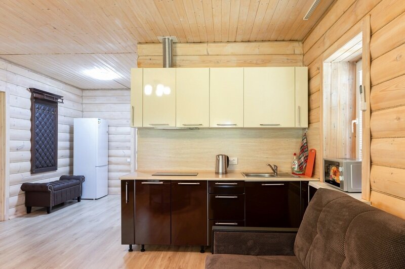 Для тех, кто любит готовить самостоятельно, в каждом коттедже полностью оборудована кухня.