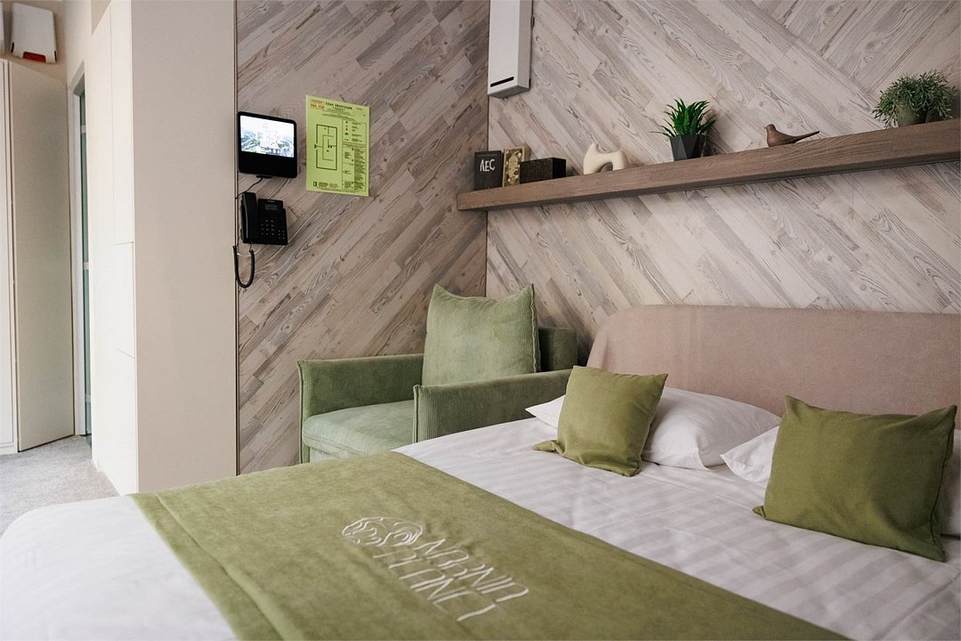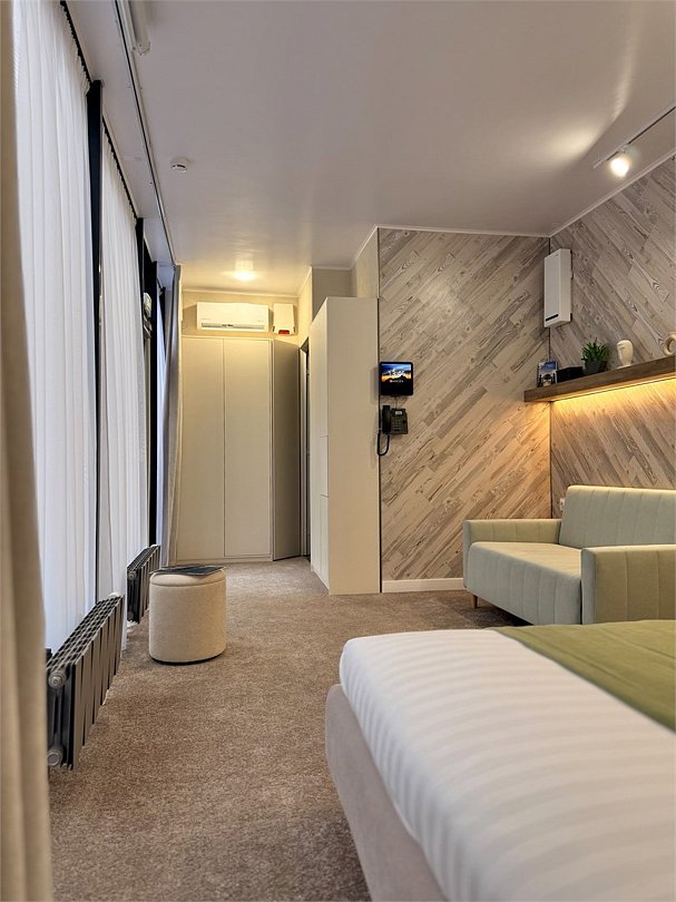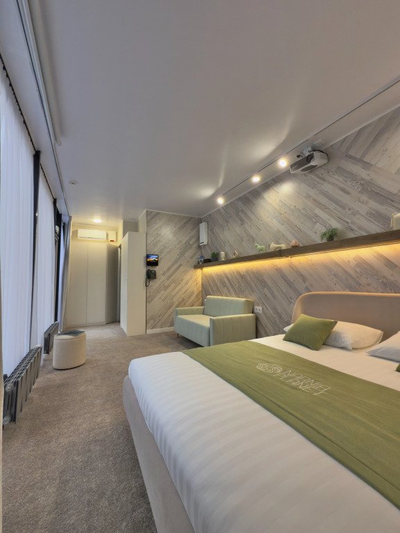 Просторная капсула общей площадью 13.5 кв.м. отлично подойдут как для пар, так и для комфортного одноместного размещения. Каждая капсула оборудована сплит системой., мини холодильником. Вместо TV, проектор. Ванная комната имеет все, что нужно для комфортного отдыха: душевую кабину, фен, средства личной гигиены. Комплимент от отеля - бутилированная вода, кофе, чай, сахар в номере.Услуги и удобства