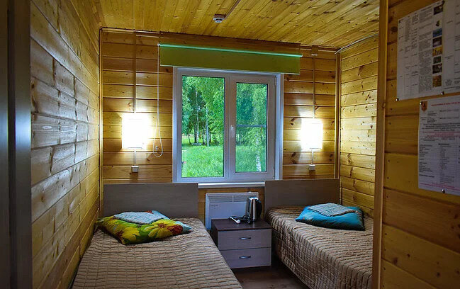 Отдельно стоящие домики с двумя номерами на 1 - 2 человека. В номере: спальная зона и санузел