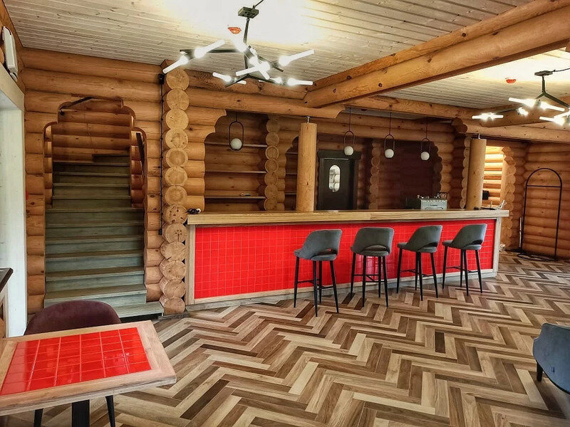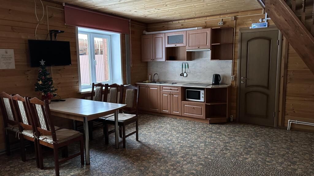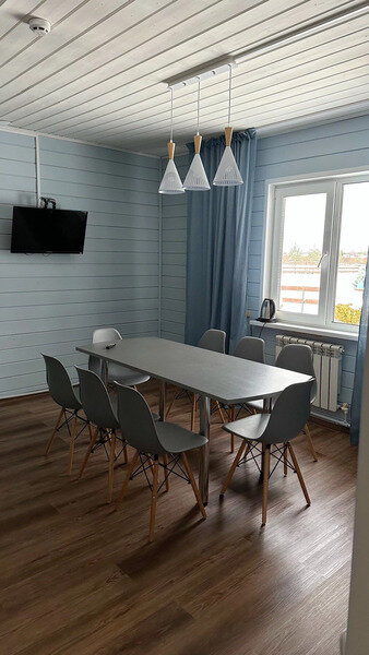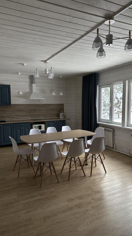 Вместимость комплекса до 20 человек. У нас отличная парная! После завершения «банного ритуала» Вы можете комфортно отдохнуть на втором этаже бани, где к Вашим услугам предоставляется просторное помещение с мягкой мебелью, столом и телевизором. Кроме того, на втором этаже бани, расположенной в гостевом доме, имеется полностью оборудованная кухня (холодильник, варочная поверхность, микроволновая печь, термопот, набор необходимой посуды) и бильярдный стол, игра на котором входит в стоимость бани в гостевом доме.Стоимость аренды комплекса за сутки-15000 ₽/до 20 чел.