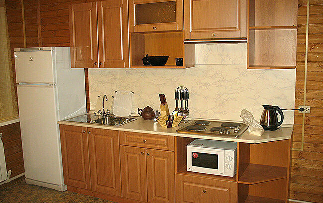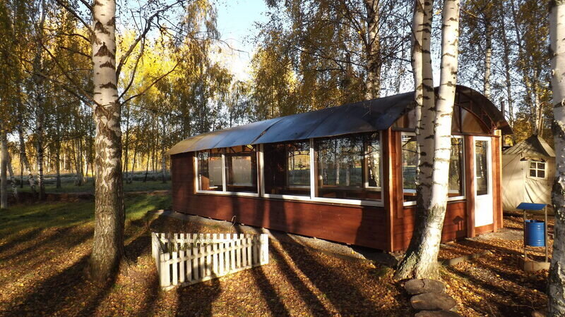 Отдельно стоящие домики на 2-3 человек. В домике есть спальная зона, санузел и оборудованная кухня.