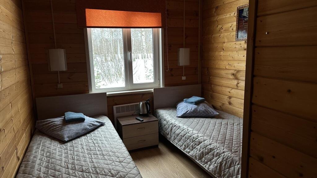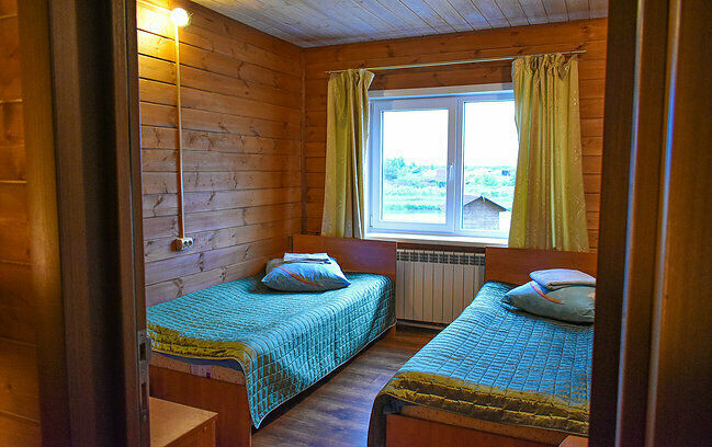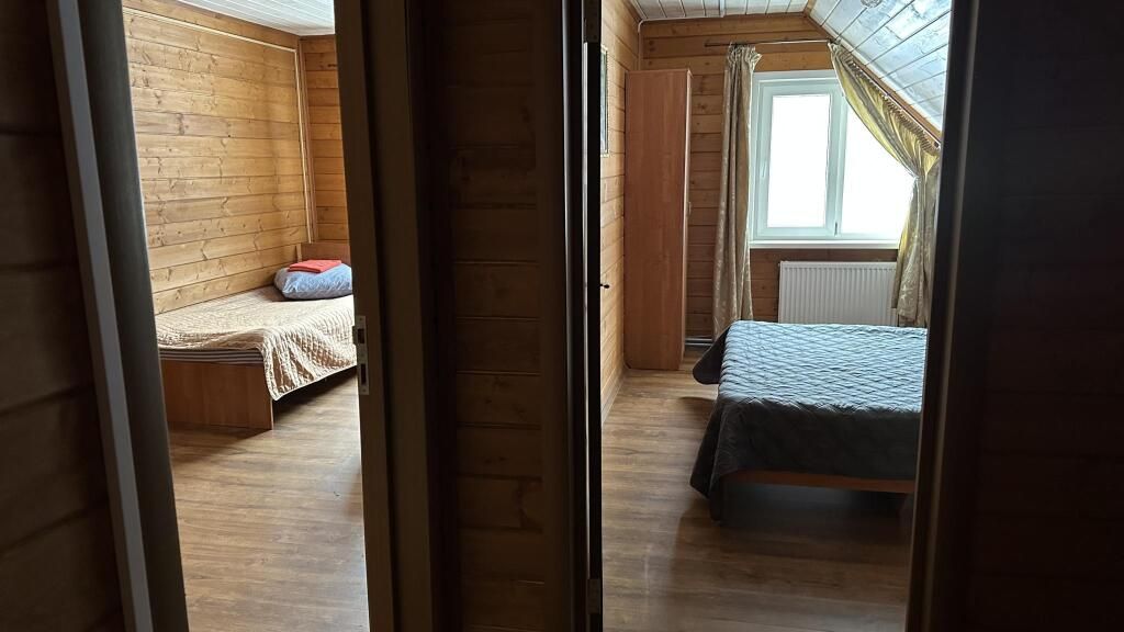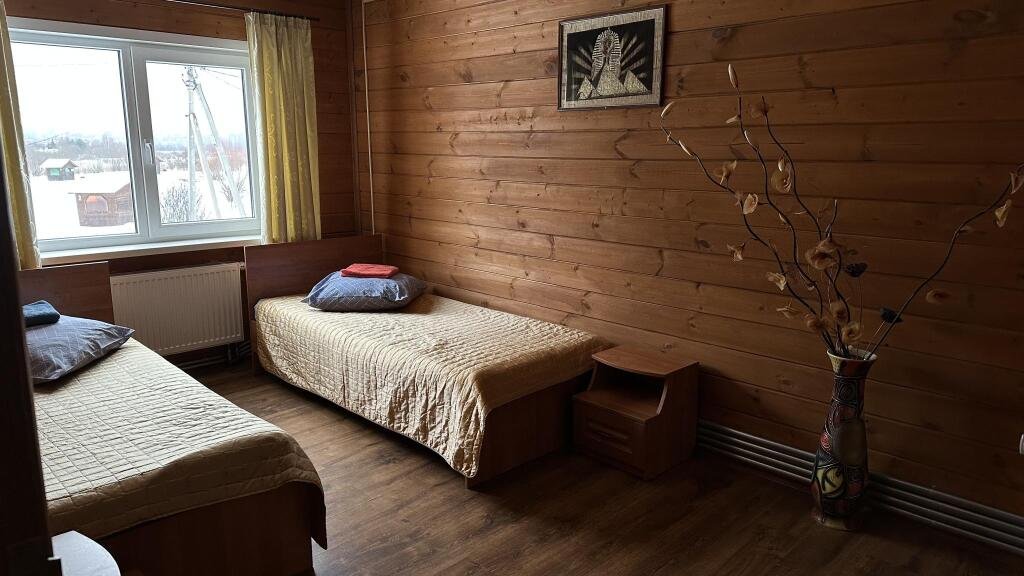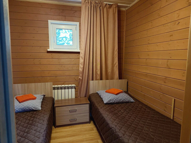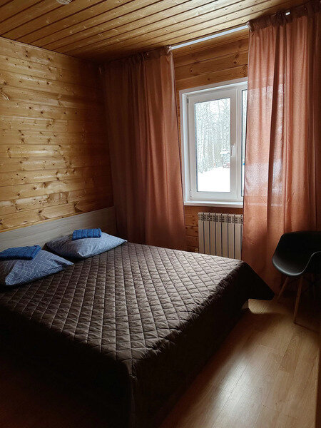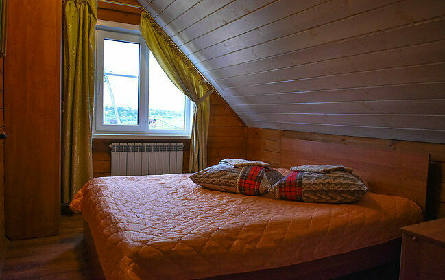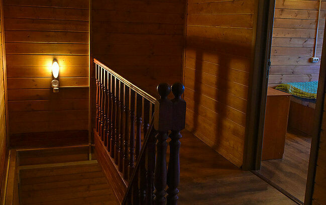 На втором этаже имеются две спальни, в одной из которых расположены две односпальных кровати, в другой - двуспальная кровать. Прямо из номеров имеется доступ в бильярдный зал и баню.