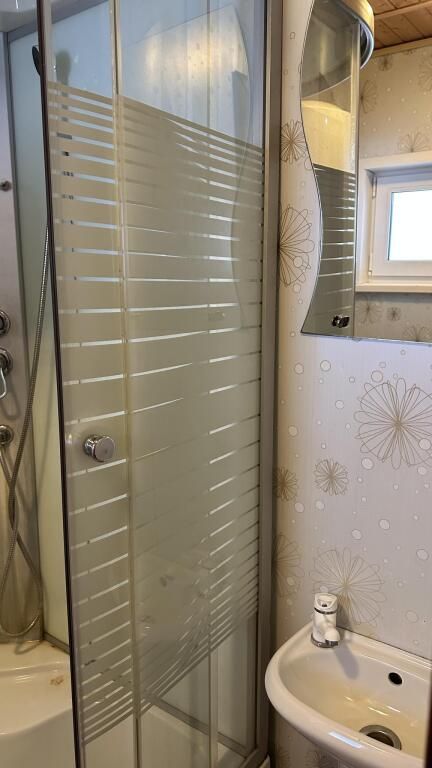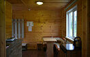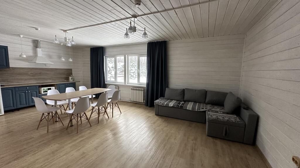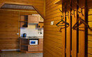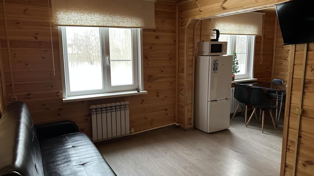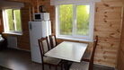 В гостиной находится оборудованная кухня и большая обеденная зона. Также в домике есть ванная комната.