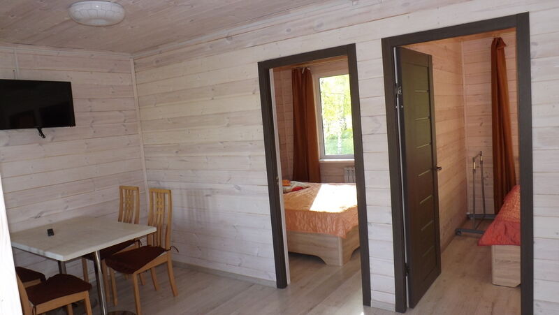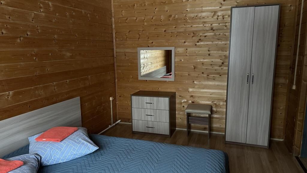Отдельно стоящий домик на 4-х человек. В домике две спальные комнаты, санузел и оборудованная кухня.