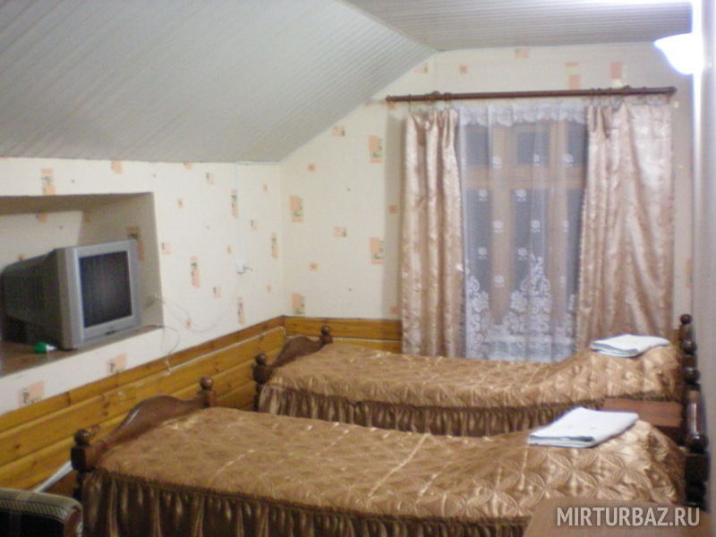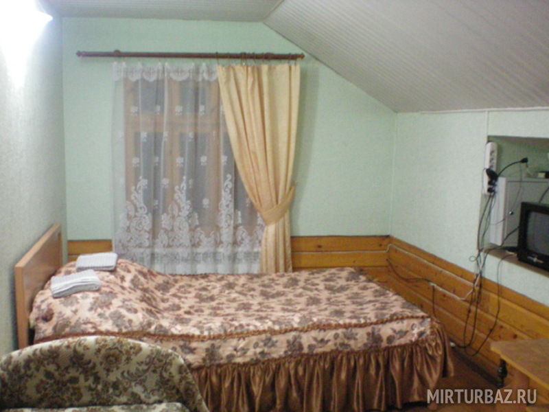 - Номер 7 — располагается в мансарде. Оборудован санузлом и душем, обставлен необходимой мебелью. Кровать двуспальная. Телевизор;