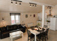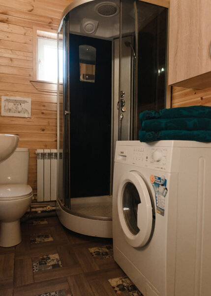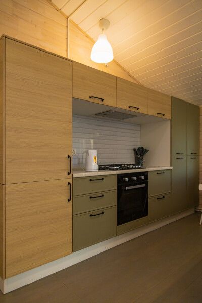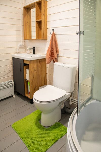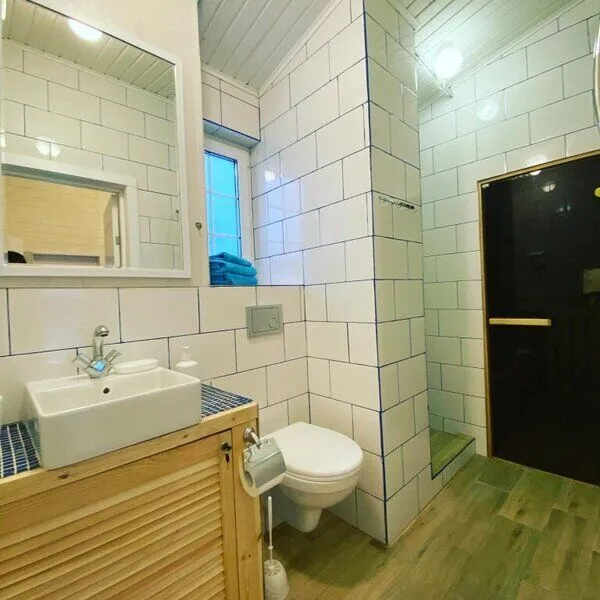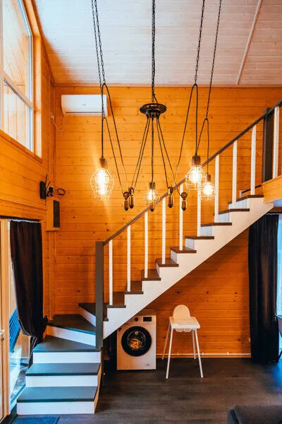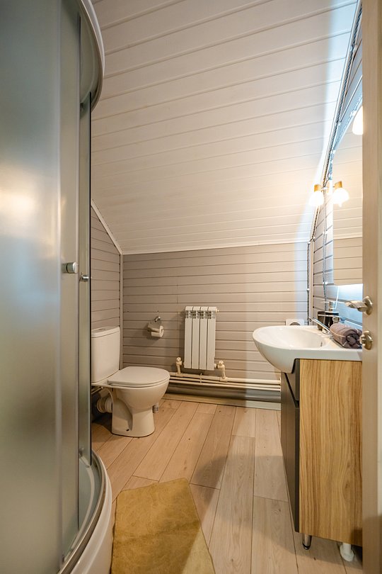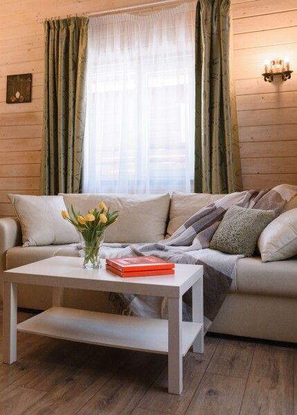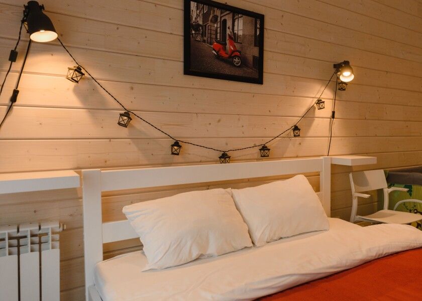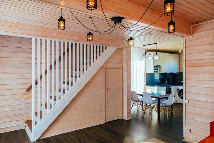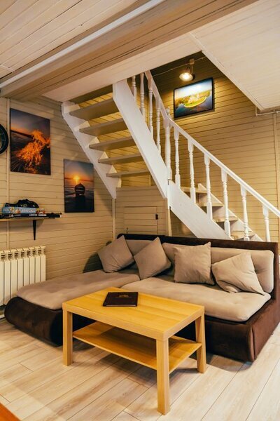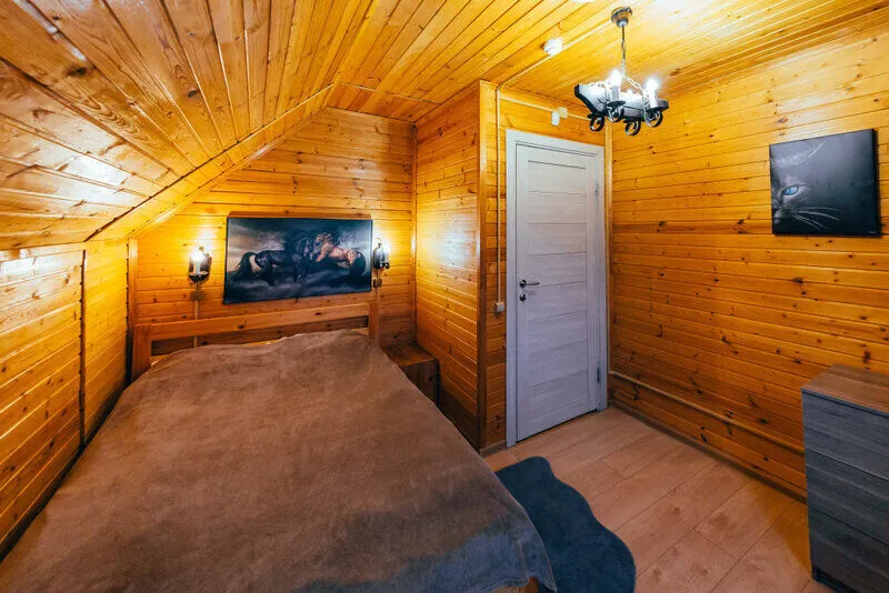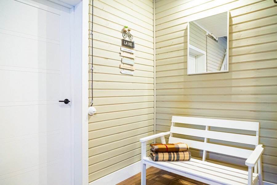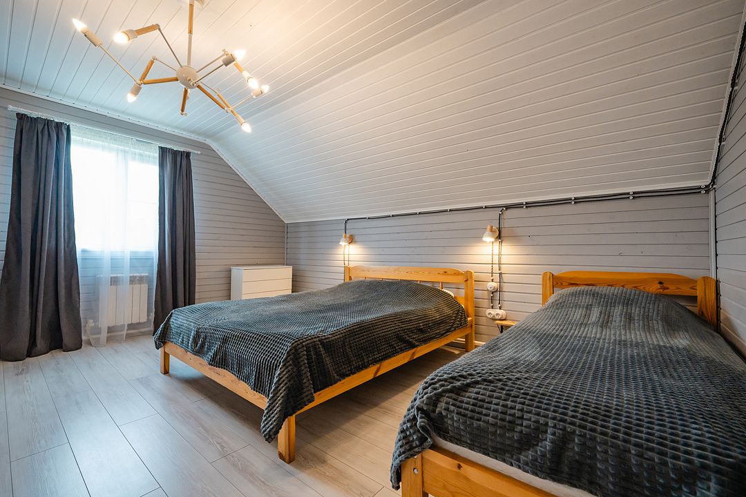 В доме — 2 спальни с удобными двуспальной и односпальными кроватями и гостиная с большим диваном, где смогут разместиться в общей сложности до 6 человек. Оборудованная кухня со всей необходимой техникой (холодильник, плита, посудомоечная машина, микроволновая печь, чайник) и полным набором посуды. В гостиной — смарт-ТВ. Бесплатный интернет через Wi-Fi. В доме есть санузел и финская сауна!