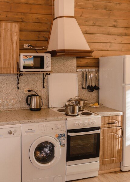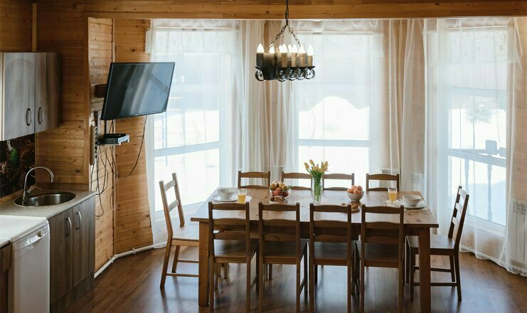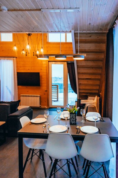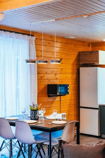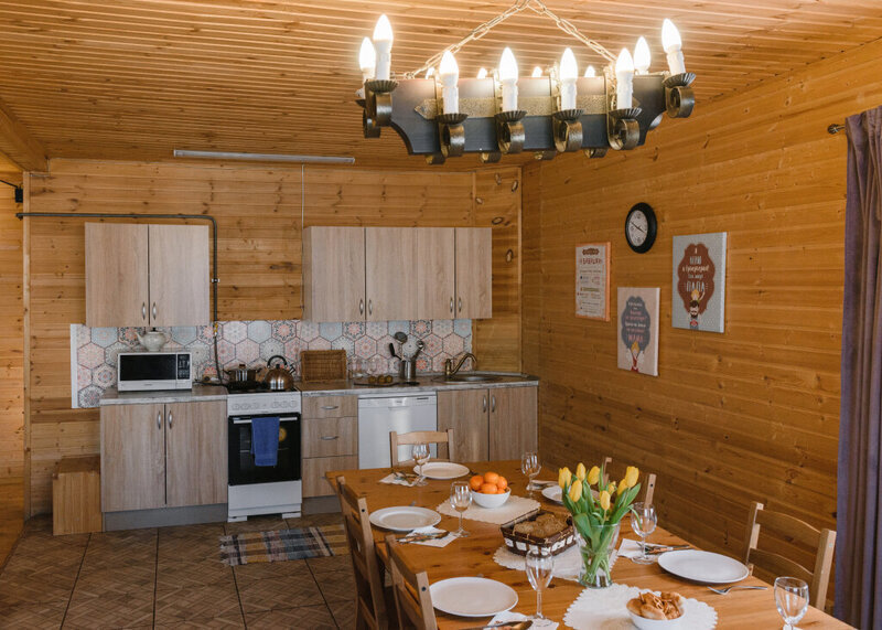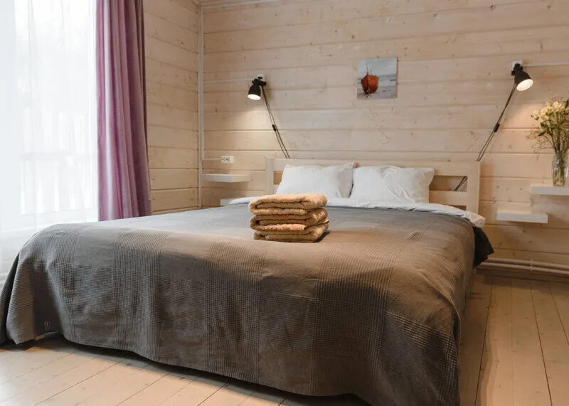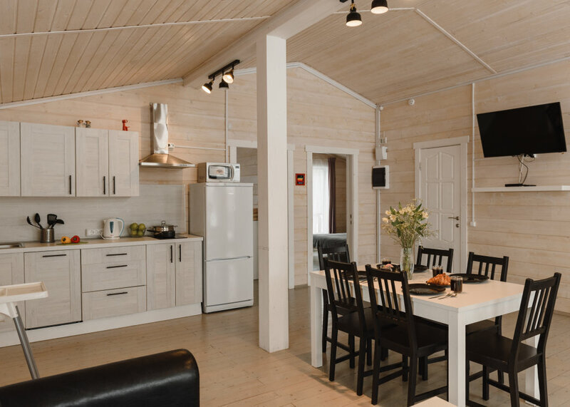 В каждом доме вас ждет полностью оборудованная кухня с посудой и техникой (холодильник, микроволновая печь, чайник, посудомоечная и стиральная машины), белоснежное постельное белье и полотенца. Имеется спутниковое телевидение и бесплатный высокоскоростной Wi-Fi. В большинстве домов есть финская сауна, посещение которой включено в стоимость проживания.