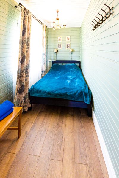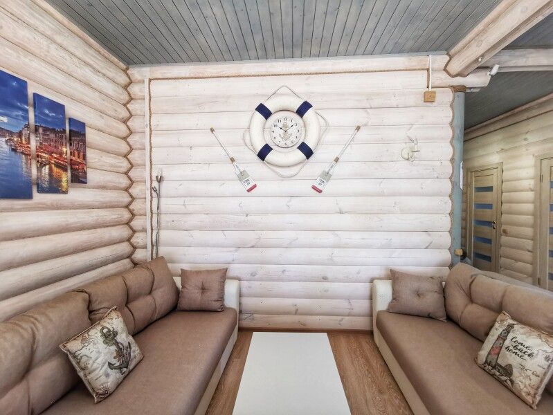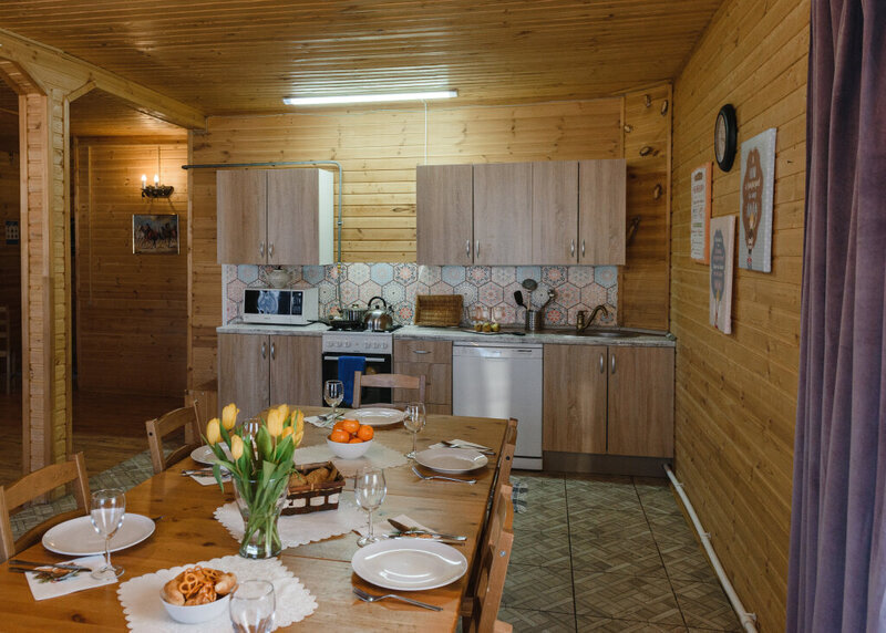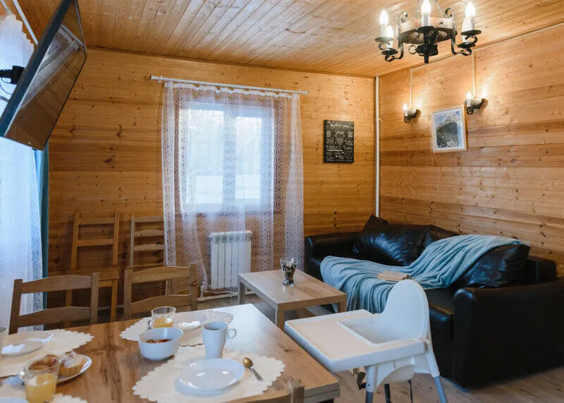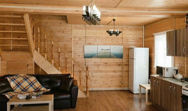 В доме — 1 комната с удобным и просторным диваном. Оборудованная кухня со всей необходимой техникой (холодильник, плита, микроволновая печь, чайник) и полным набором посуды. Спутниковое ТВ. Бесплатный интернет через Wi-Fi. В доме есть 1 санузел и финская сауна!