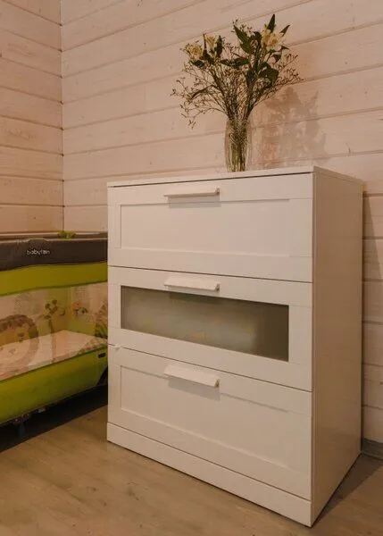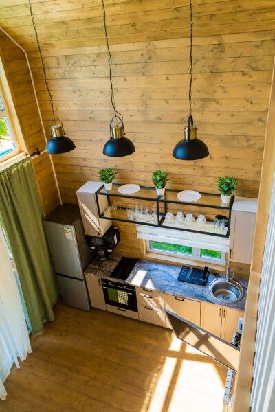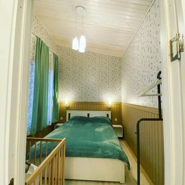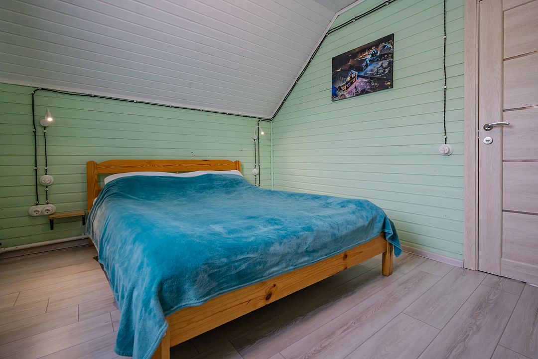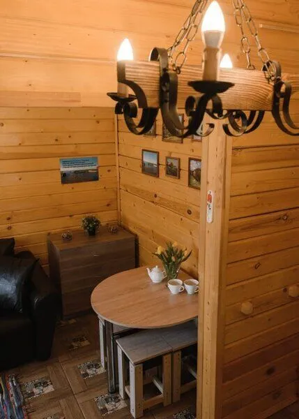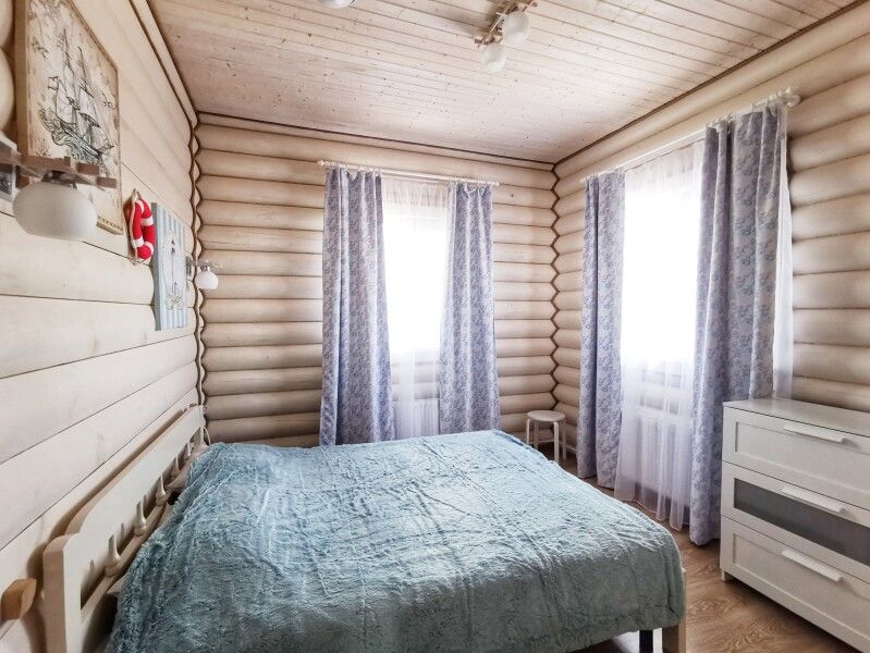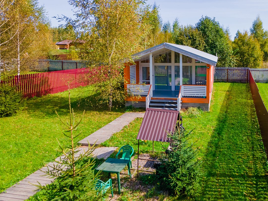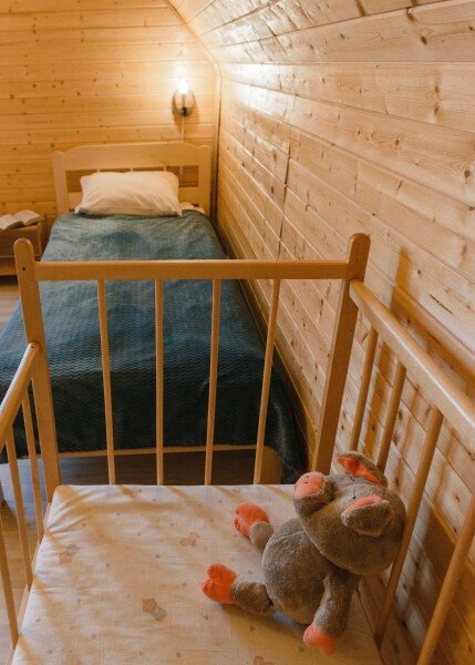 В доме — 1 спальня с удобной двуспальной кроватью, спальным детским манежем и гостиная с диваном, где смогут разместиться в общей сложности до 4 человек. Оборудованная кухня со всей необходимой техникой (холодильник, плита, посудомоечная машина, микроволновая печь, чайник) и полным набором посуды. В гостиной спутниковое ТВ. Бесплатный интернет через Wi-Fi. В доме есть санузел и финская сауна!