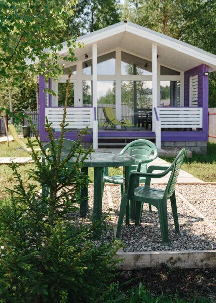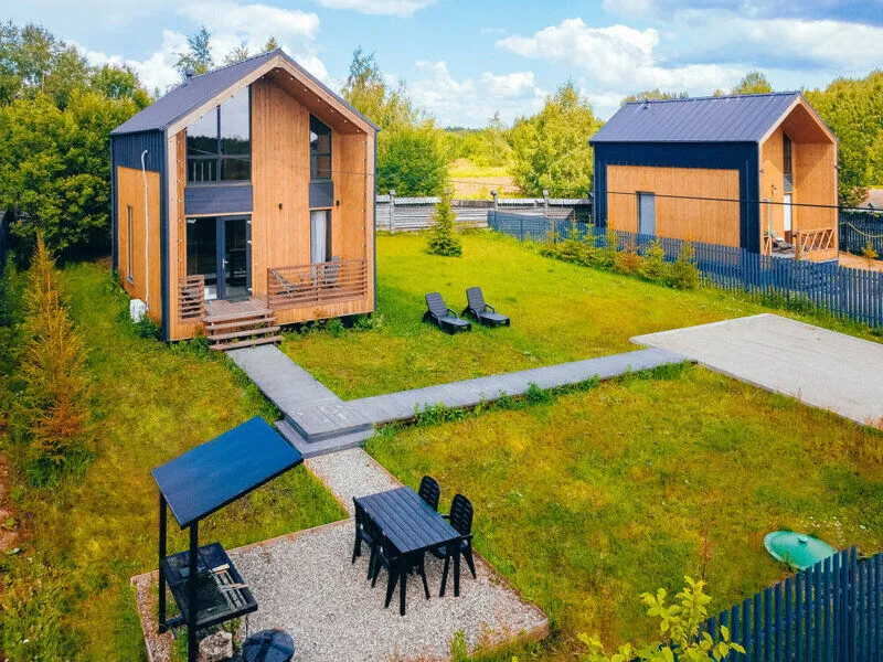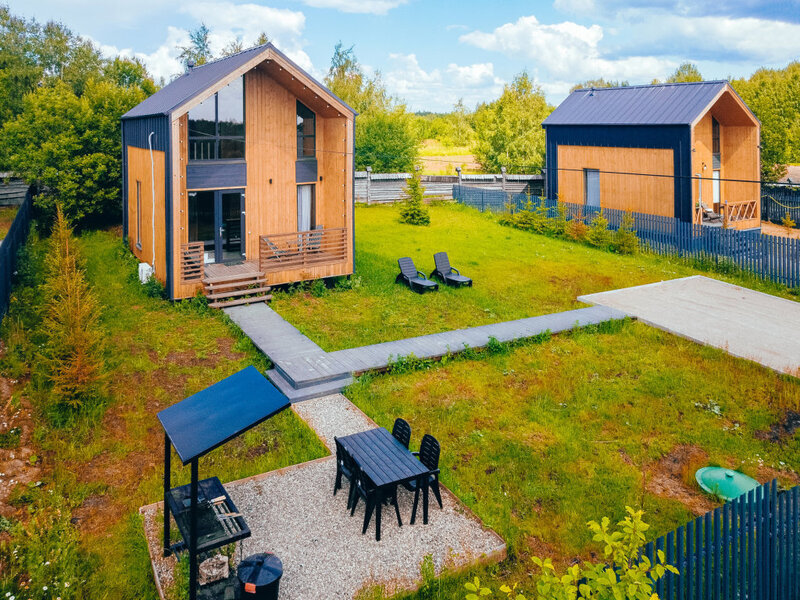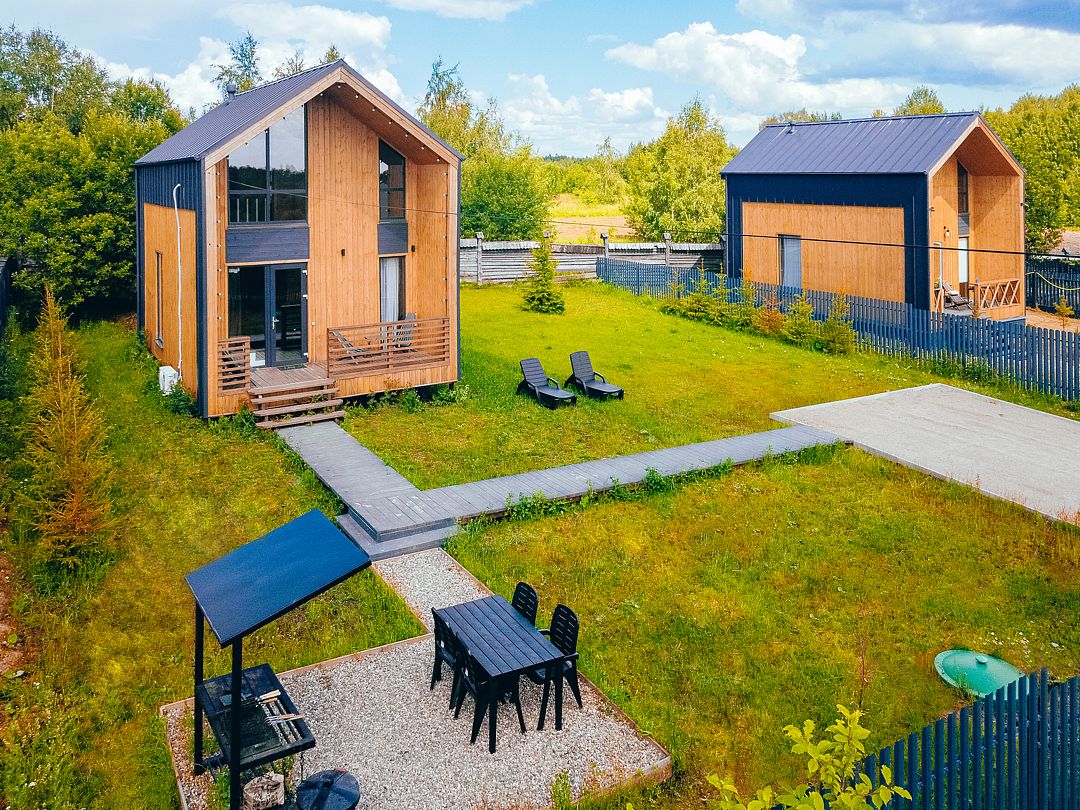 Также у домов обустроена отдельная ухоженная территория с мангалом и уличной мебелью.