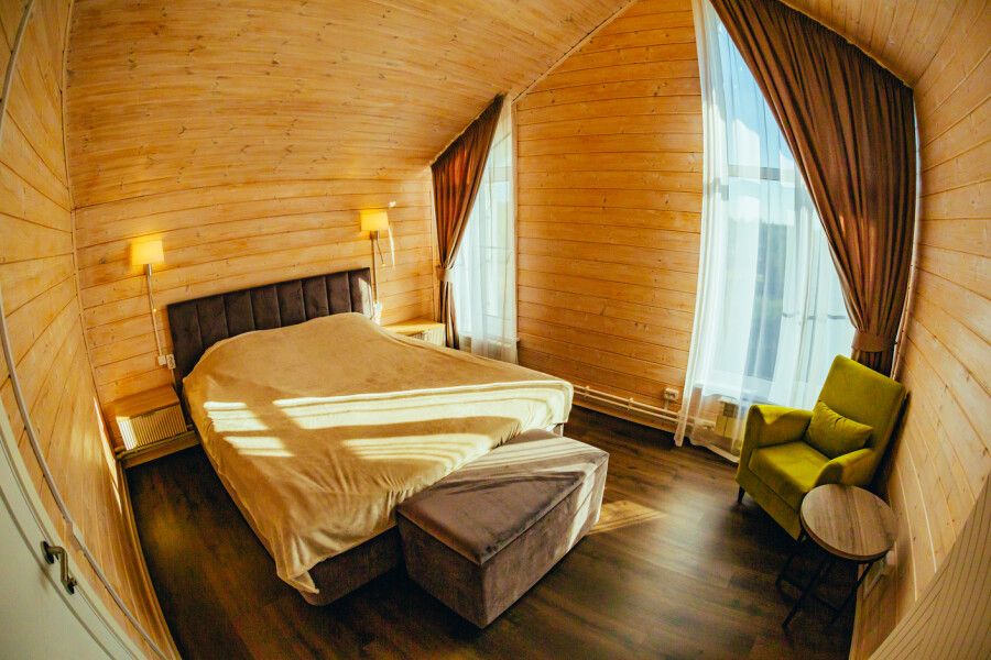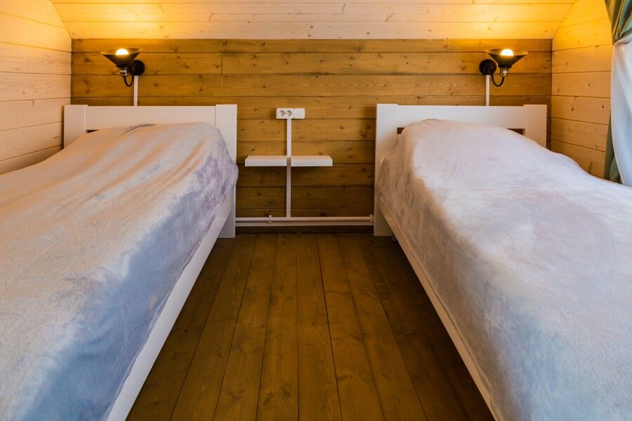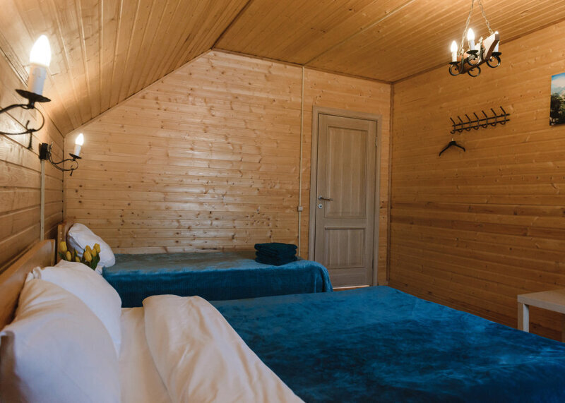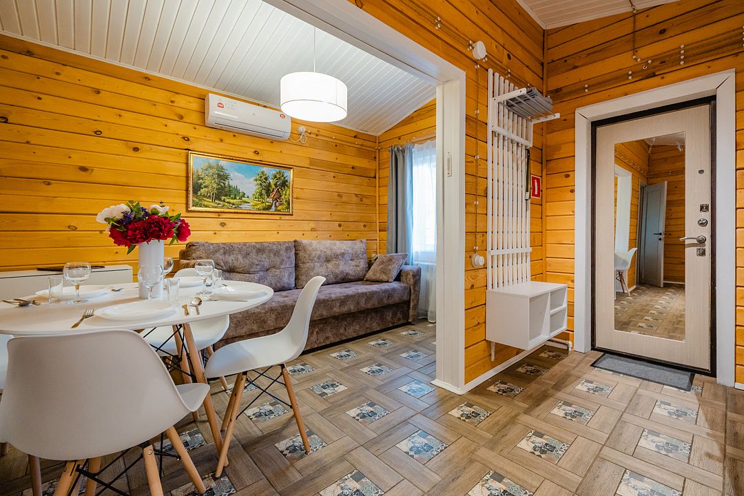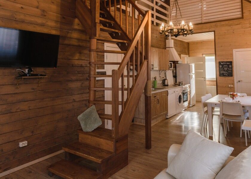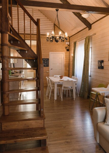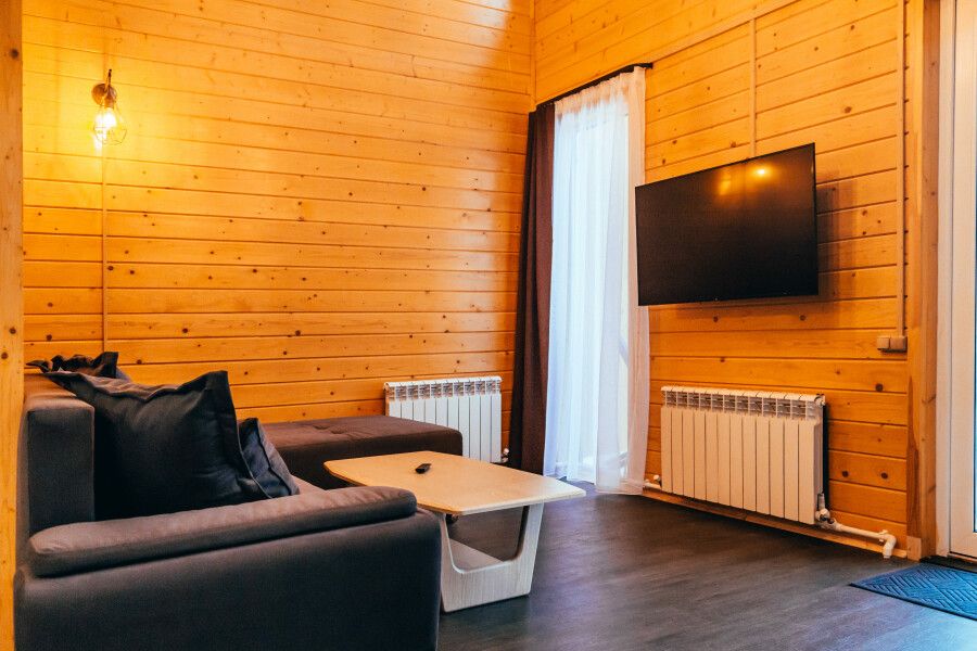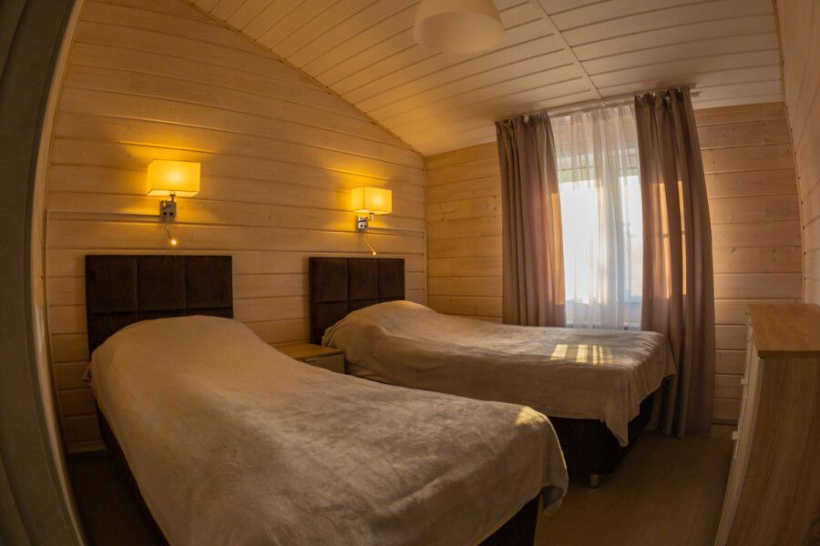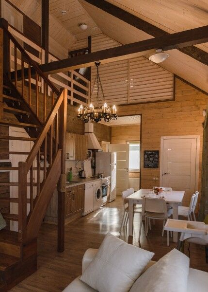 Эко-шале из бруса с сауной рассчитаны на семью до 4 человек.