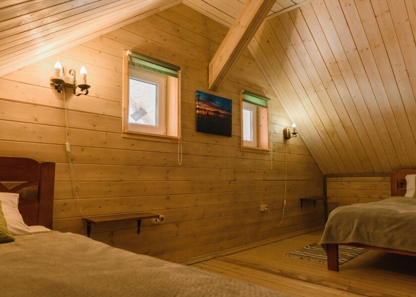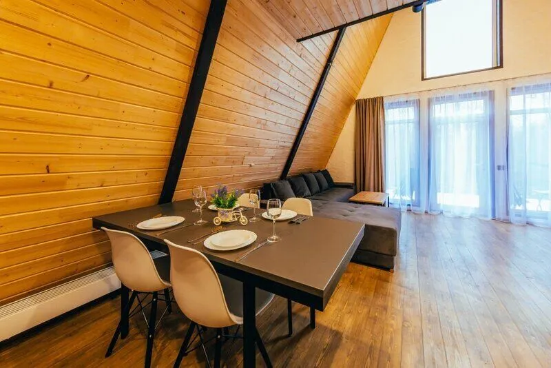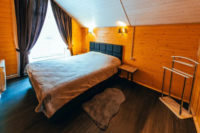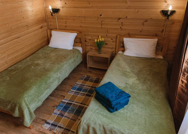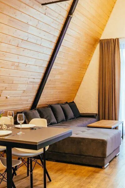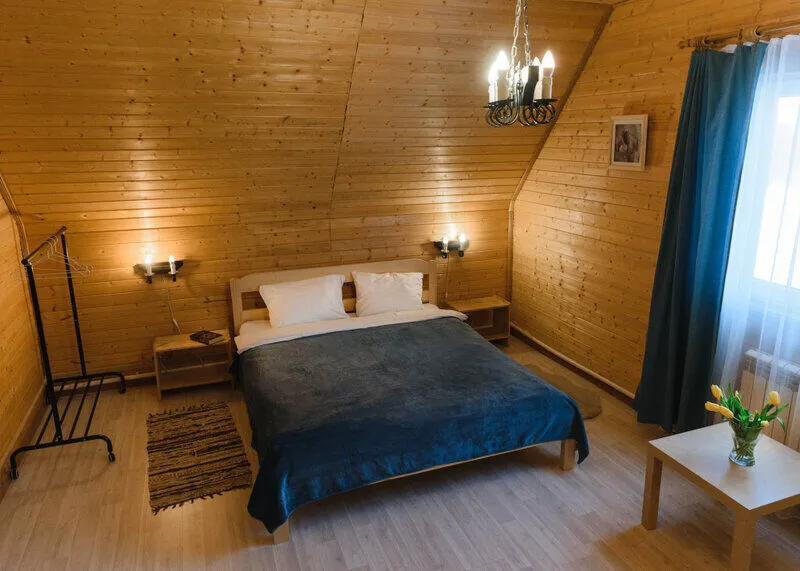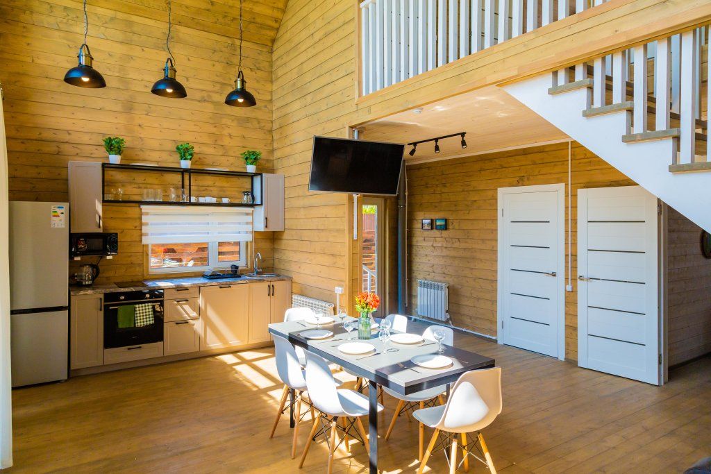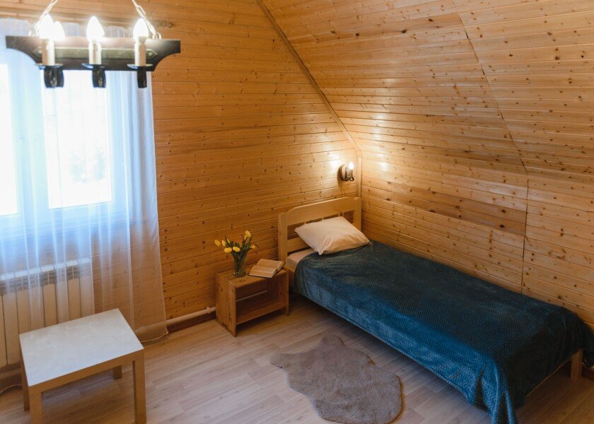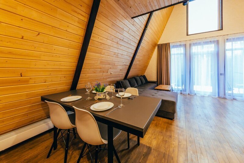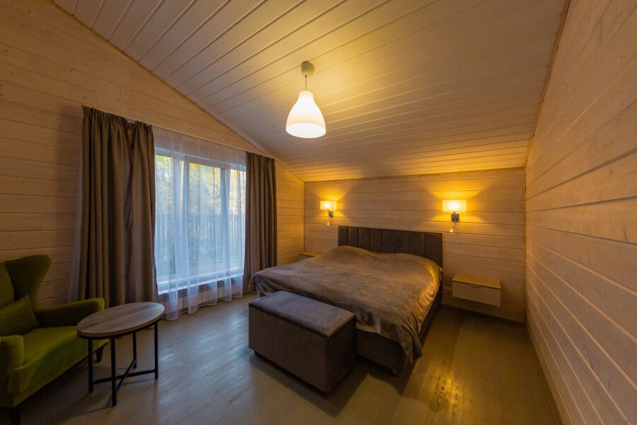 Эко-шале из бруса с сауной рассчитаны на семью до 4 человек.