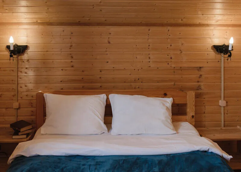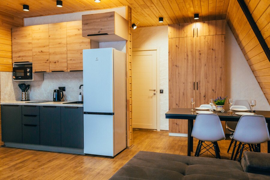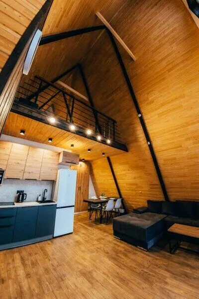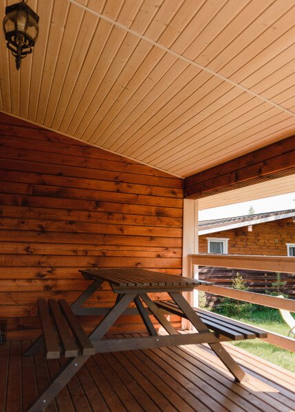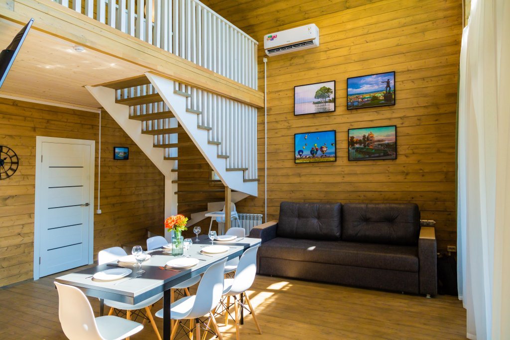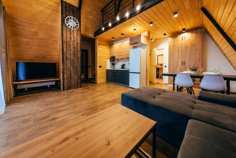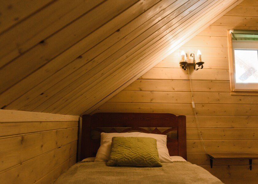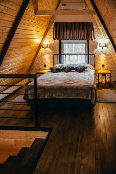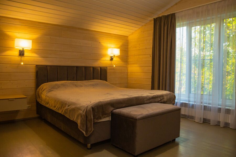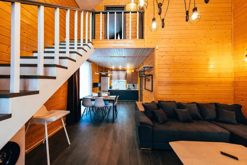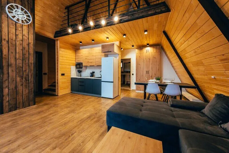 Эко-шале из бруса с сауной рассчитаны на семью до 4 человек.