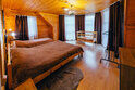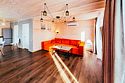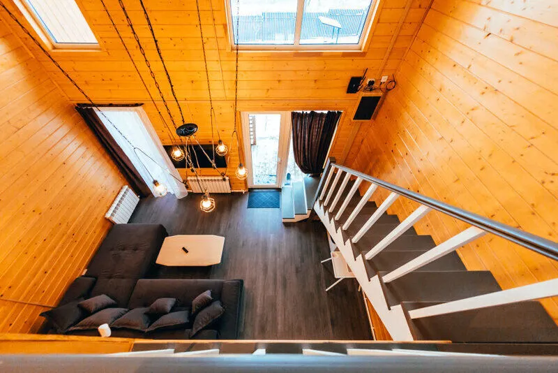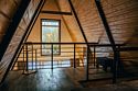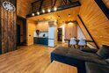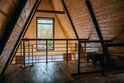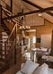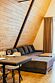 Просторная гостиная со вторым светом и уютная спальня на мансарде с видом на лес, где смогут разместиться в общей сложности до 4 человек.