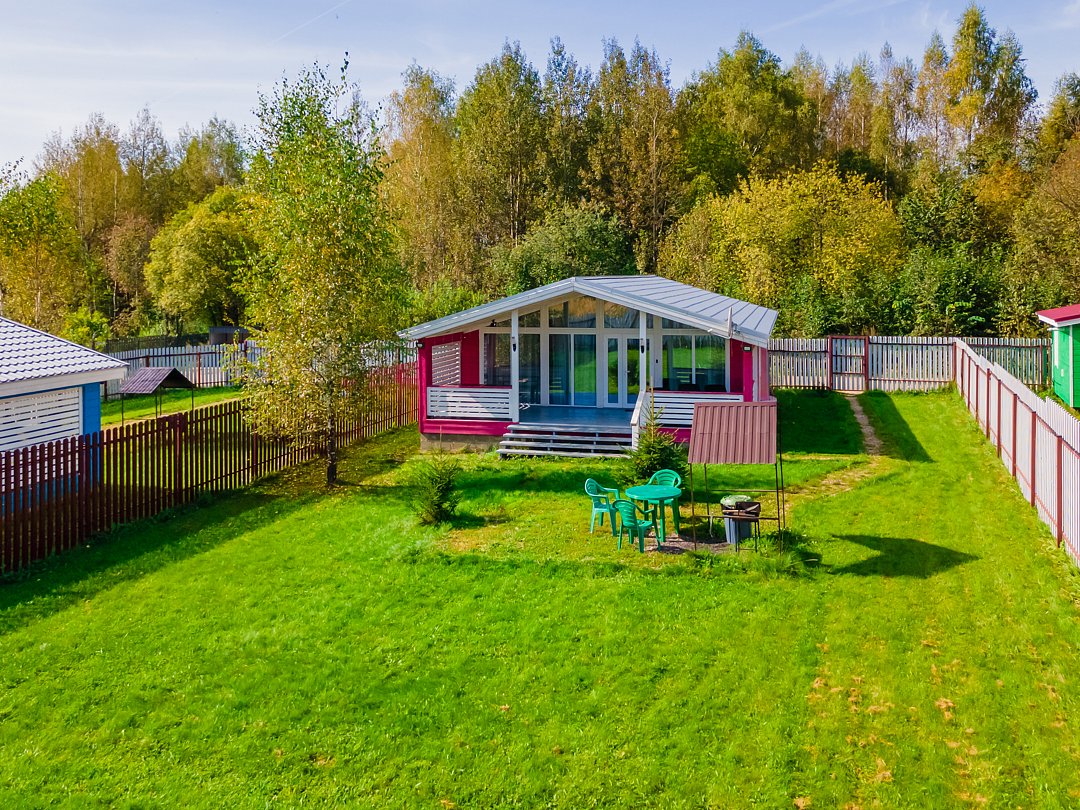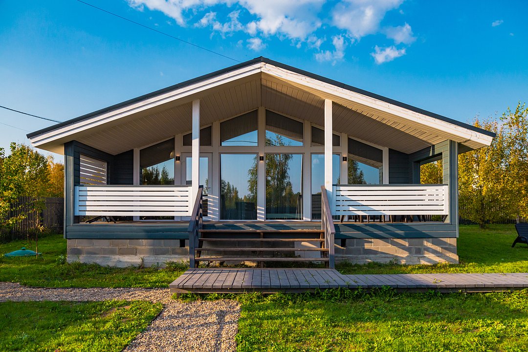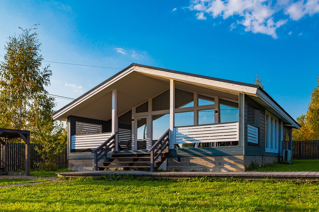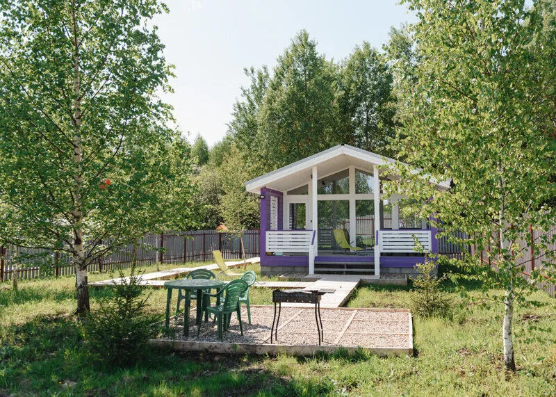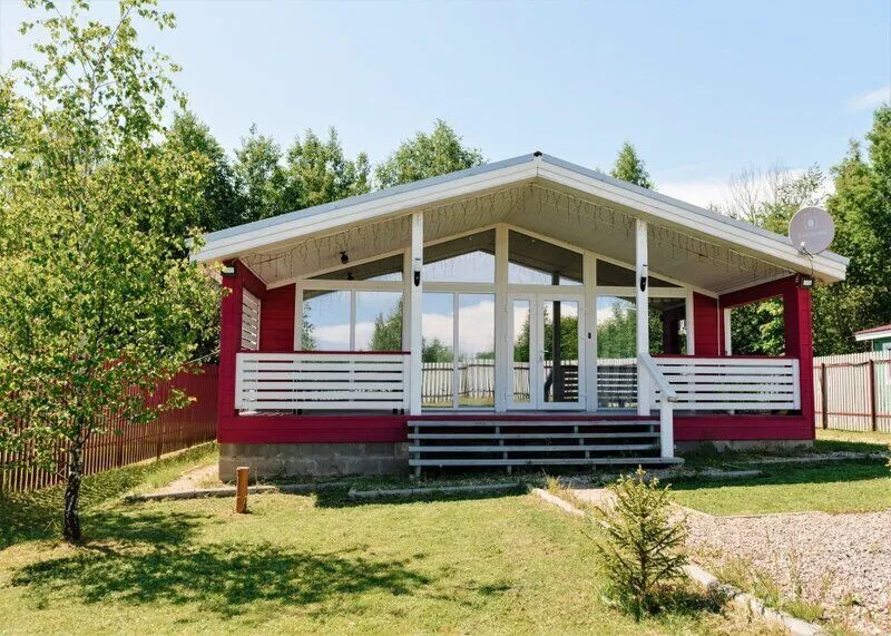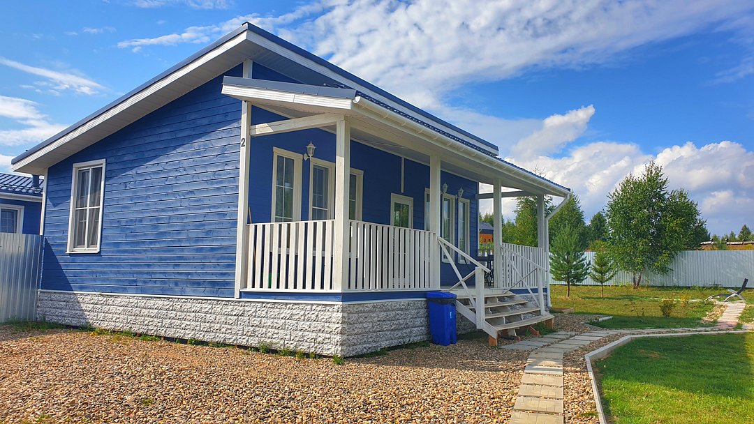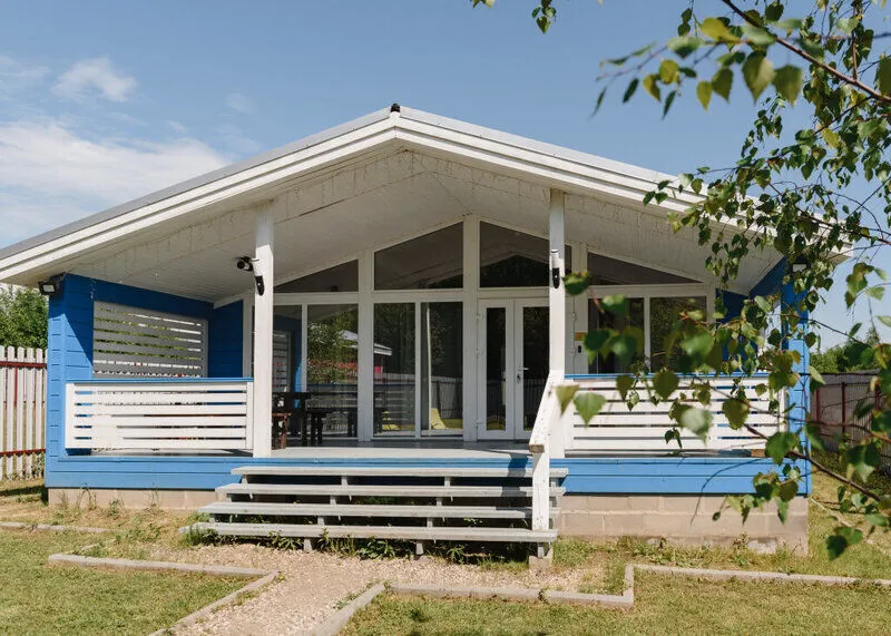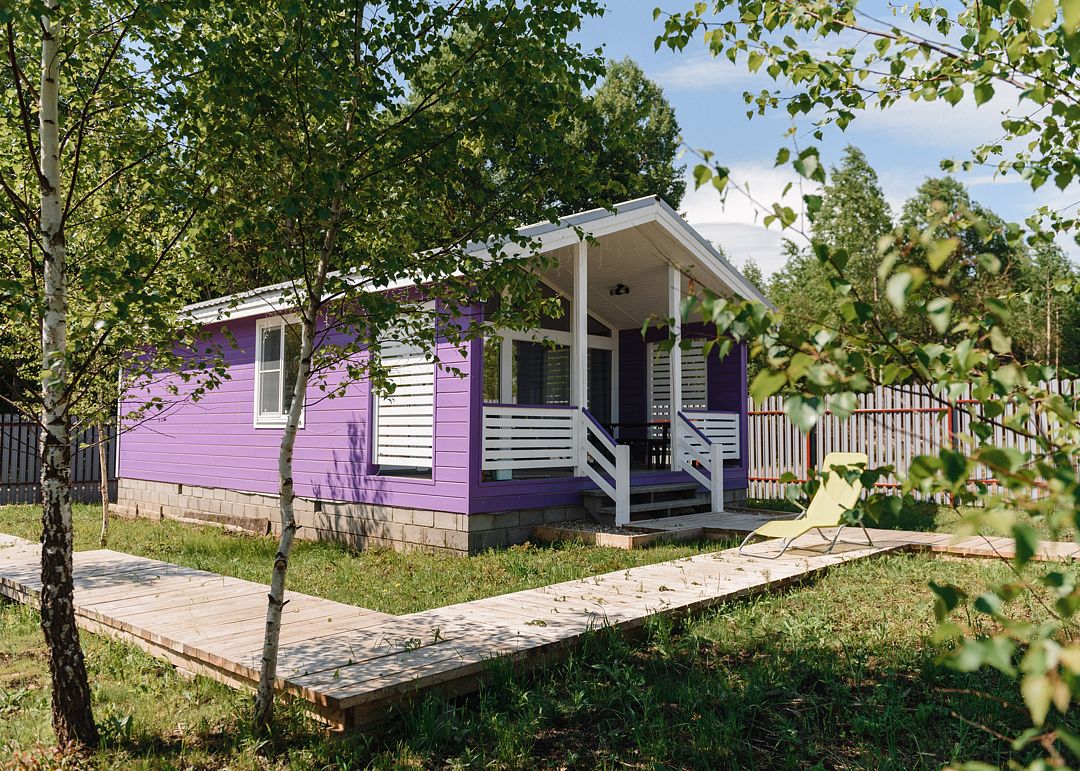 Одноэтажный дом с двумя спальнями и гостиной. В доме есть собственная сауна и панорамные окна.