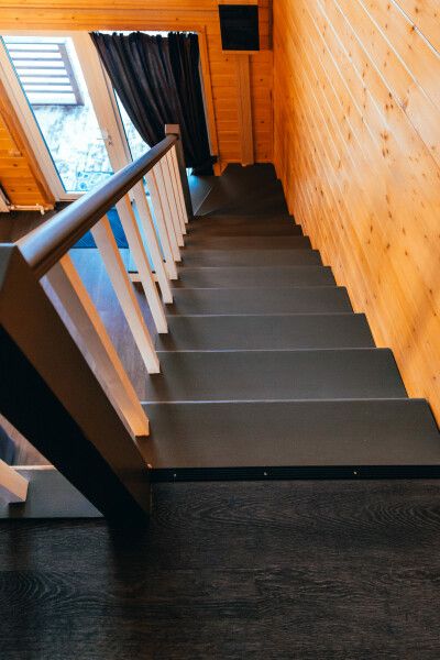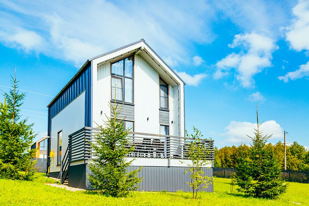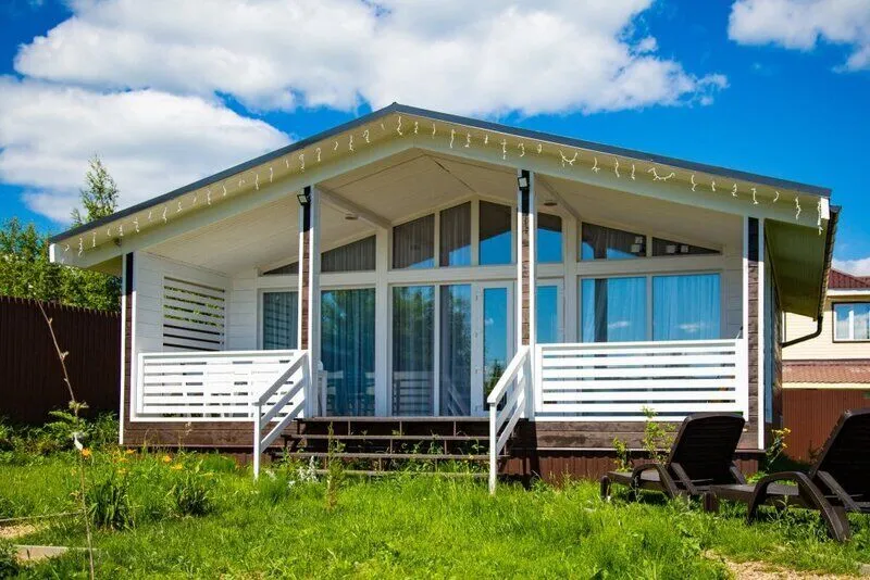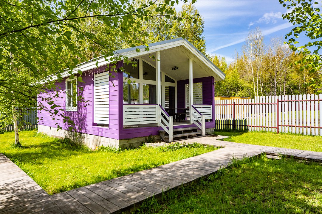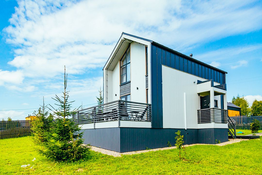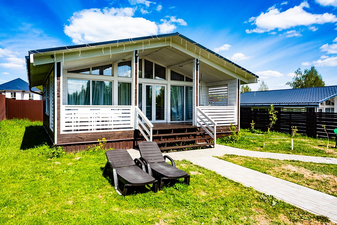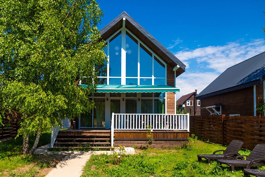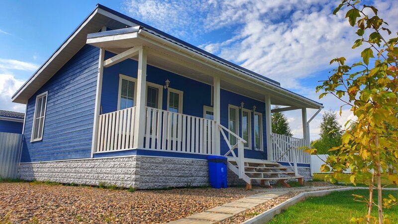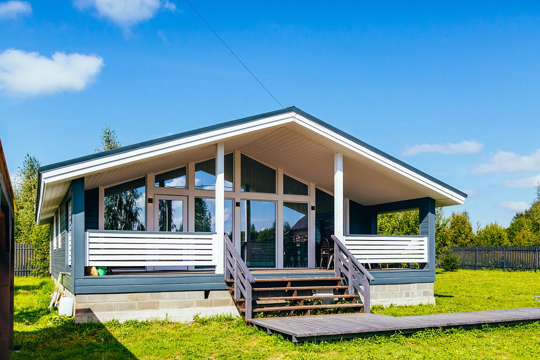 Одноэтажный дом с двумя спальнями и гостиной. В доме есть собственная сауна и панорамные окна.