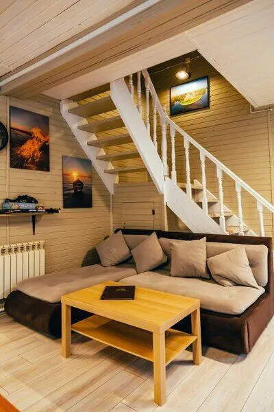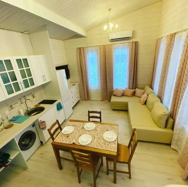 Гостиная-кухня, спальня и еще одна уютная спальня на мансарде, где смогут разместиться в общей сложности до 4 человек.