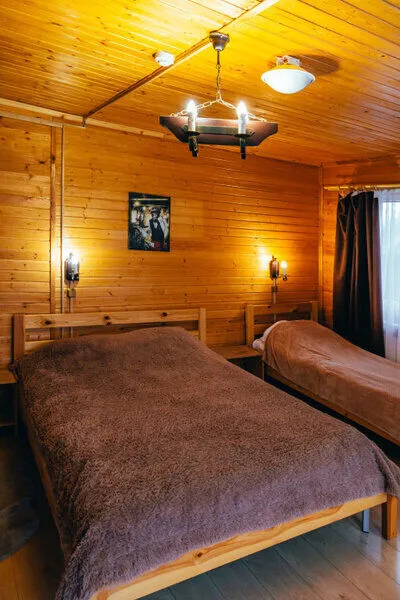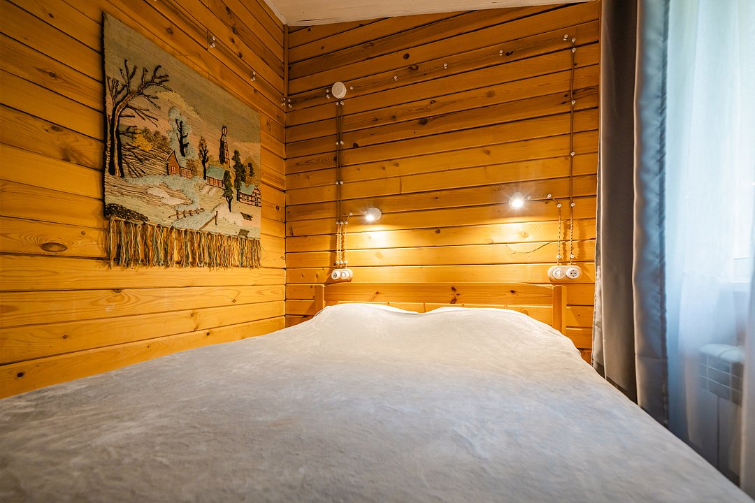 Рубленый из бревна дом-изба с сауной рассчитан на проживание 2 человек.